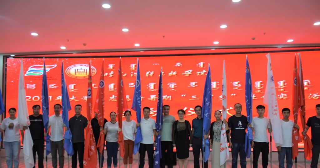 胡春梅副书记作动员讲话,并为暑期社会实践团队授旗。胡书记表示,在建党百年之际,认真组织好今年暑期“三下乡”社会实践活动,对于广大青年感受党带领人民取得的巨大成就具有深远意义。并对实践团队和青年志愿者提出五点要求和希望:一是注重思想政治引领;二是注重锤炼品德修养;三是要精心组织实施;四是打造品牌活动;五是确保安全凯旋。