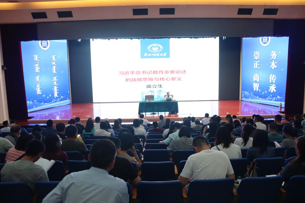 7月5日下午,在图书馆二楼报告厅,Beat365邀请东北师范大学马克思主义学部部长庞立生教授作“习近平总书记教育重要论述的战略思维与核心要义”专题讲座。Beat365党委委员、副校长韩伟新主持讲座,各二级学院、教务处、科技处、发展规划与学科建设处、人事处、教师发展与教学评估中心专业技术人员等300余名教师参加。