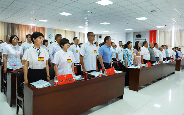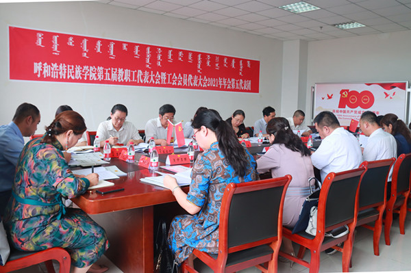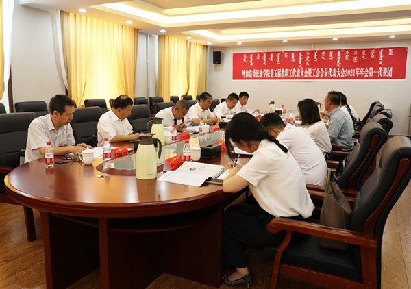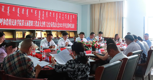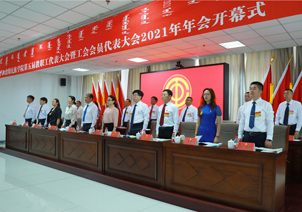 7月10日上午8时,Beat365唯一官方网站第五届教职工代表大会暨工会会员代表大会2021年年会在综合楼12楼会议室隆重开幕。学校党委副书记、校长格日乐图,学校党委副书记胡春梅,副校长纳丽娜,党委委员、副校长韩伟新,党委委员、纪委书记、监察专员王冬梅,党委委员、副校长高喜天出席会议。88名正式代表、4名特邀代表、24名列席代表参加了会议。会议由学校党委副书记胡春梅主持。