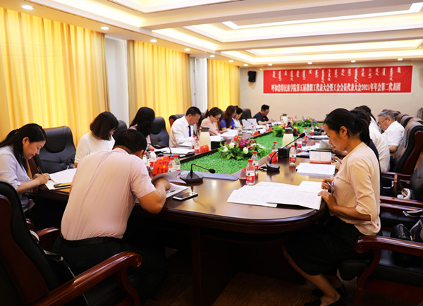 7月10下午4:30在综合楼12楼会议室召开大会第二次全体会议。会议由党委委员、副校长高喜天主持。会上,表决通过了《校长工作报告的决议》(草案)。校党委副书记、校长格日乐图致闭幕词。格校长指出,这次大会是学校在庆祝中国共产党成立100周年、深入开展党史学习教育、深入学习习近平总书记“七一”讲话、深入研究和谋划学校“十四五”时期事业发展的大背景下召开的一次重要会议。会议全面总结了2020年学校开展的各项主要工作,深入分析了“十四五”时期学校发展面临的形势与任务,讨论了学校“十四五”教育事业发展规划和2035远景目标纲要、专业技术资格评审办法等重要文件,审议了校长工作报告、学校财务工作报告、工会工作报告、学校工会经费收支情况报告、提案工作报告,并就切实抓好今年的重点工作进行了部署,对学校发展具有谋篇布局、继往开来的重要意义。是一次反映民意、集中民智、凝心聚力、共谋发展的大会,是一次民主和谐、团结奋进、求真务实的大会,必将对进一步动员和激励全校师生员工积极投身学校事业发展建设、实现高质量发展起到重要的推动和促进作用。