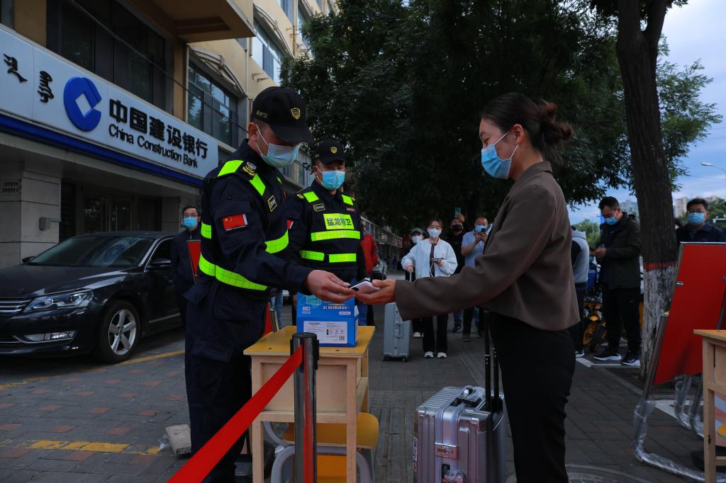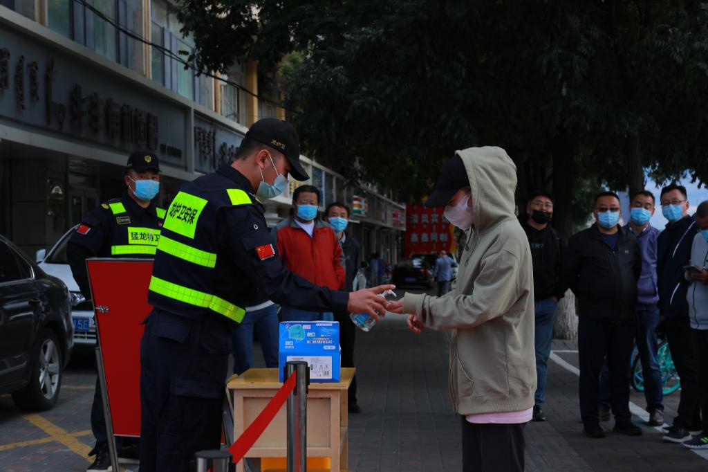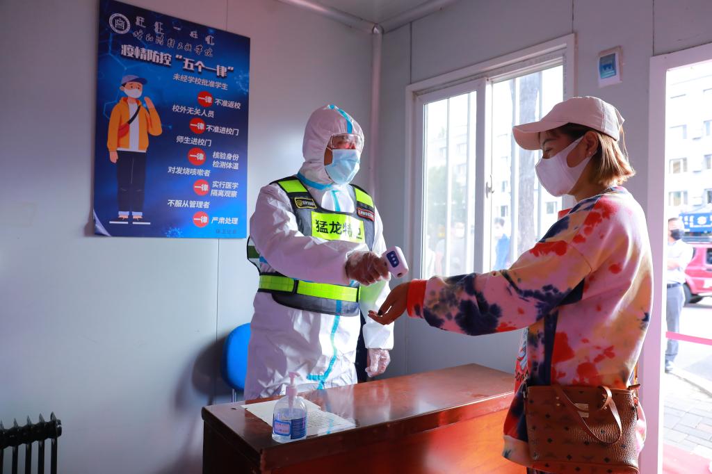 师生间隔一米,出示48小时内核酸检测阴性证明、绿色行程码、健康码,经过手消、行李消杀及测量体温合格后,方可进入校园。