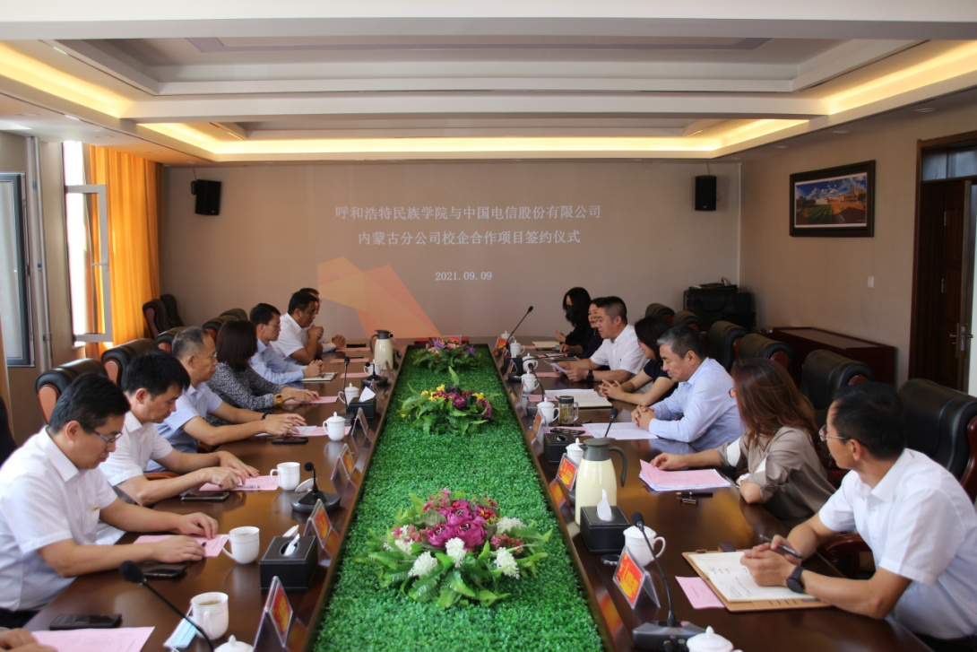 会议首先,中国电信内蒙古分公司党委委员、副总经理刘槟楠和副校长纳丽娜签订了合作协议。