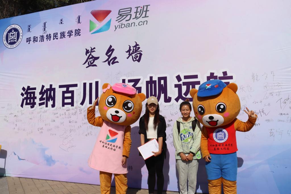 新生签名并与易小熊合影