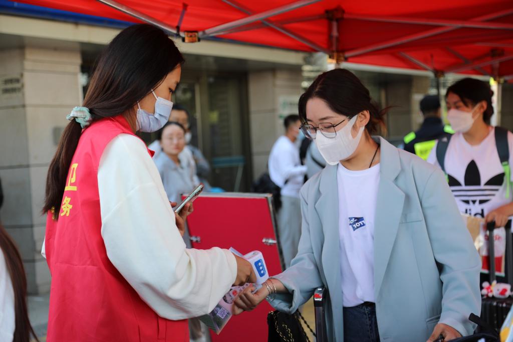 为确保迎新工作有序开展,学校严格落实疫情防控要求,周密部署,严格校门管控,测温、验码、查身份证,将保障学生健康安全放在了首位。
