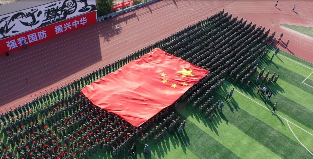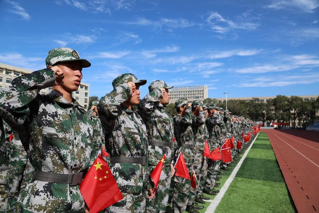 全体新生高喊口号向祖国深情告白