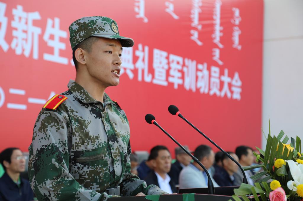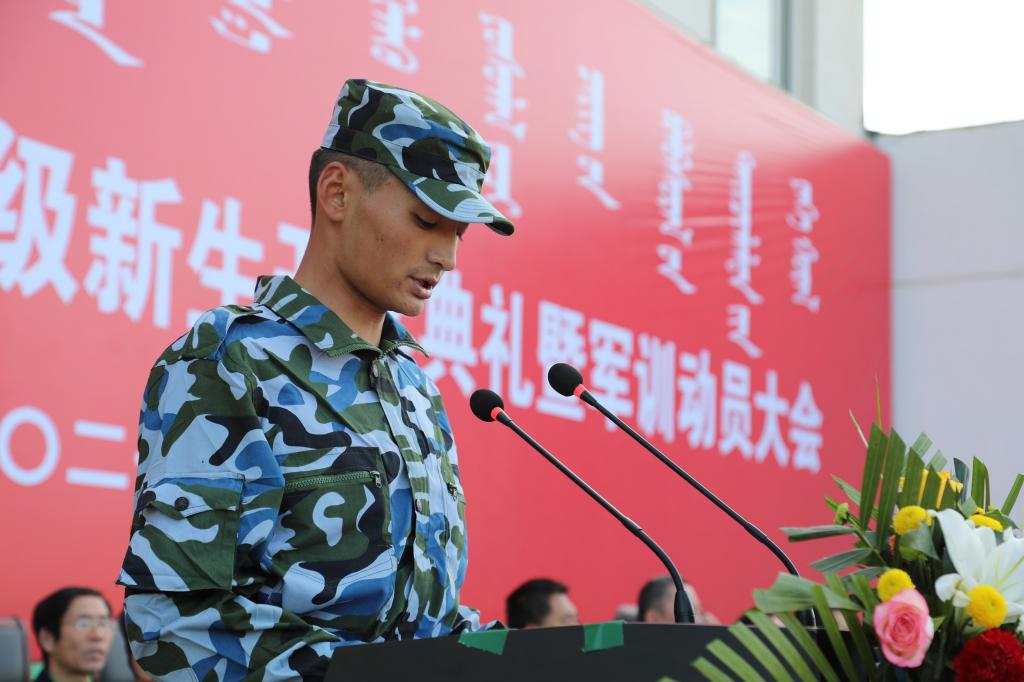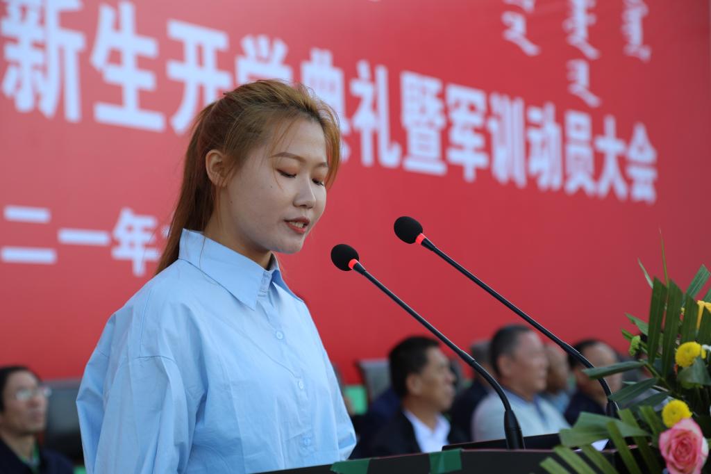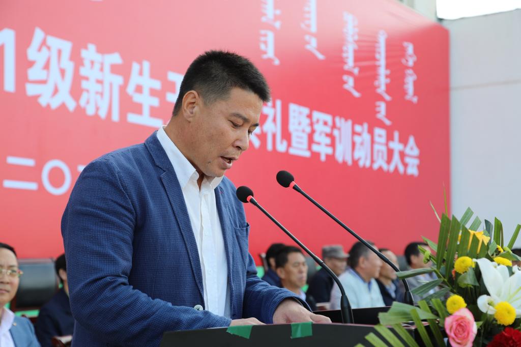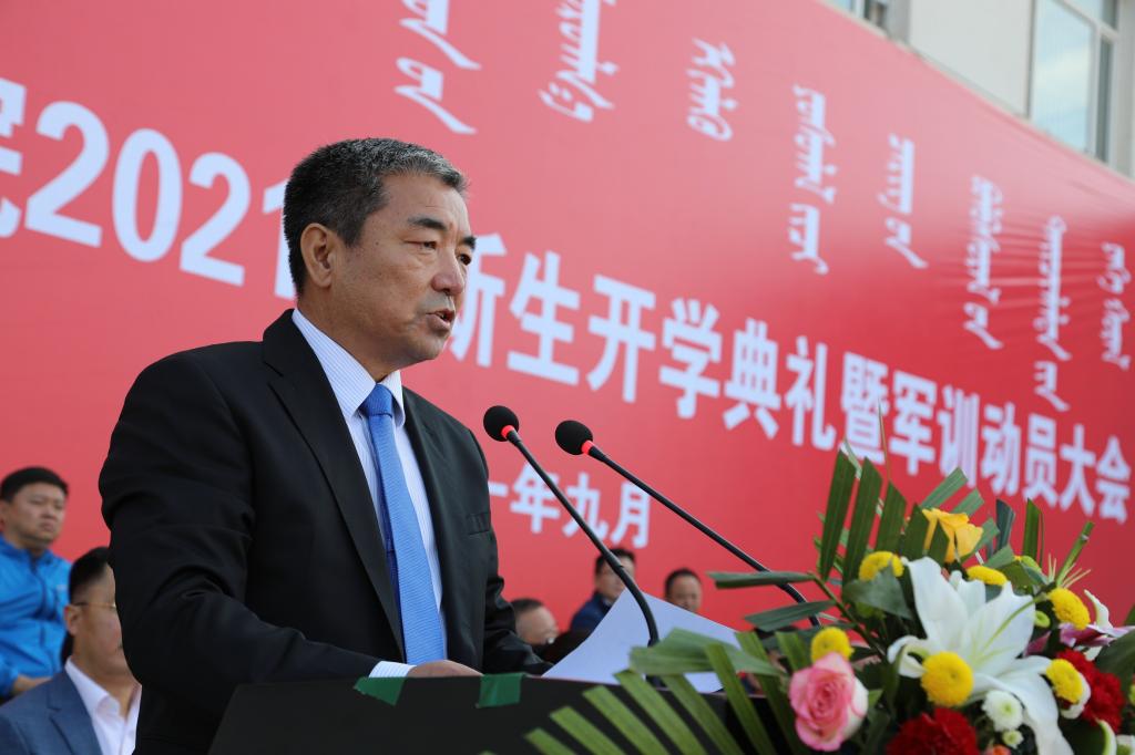 最后,学校党委副书记、校长格日乐图以《继往开来 接续奋斗 携手共进新征程》为题致辞。他代表全校各族师生员工欢迎2021级新同学的到来,并向由Beat365退役大学生组成的军训教官团表示感谢和敬意。格校长从学校办学历史、学科、专业、科研、师资、校园文化、对外交流等方面向学生介绍了学校发展情况,并对同学们提出了四点希望:一是坚定信念,勇担时代使命。坚定中国特色社会主义理想信念,投身伟大时代,争做堪当民族复兴重任的时代新人。二是团结奋进,涵育家国情怀。铸牢中华民族共同体意识,牢固树立休戚与共、荣辱与共、生死与共、命运与共的共同体理念,像石榴籽一样紧紧抱在一起。三是增长学识,练就扎实功底。利用大学的系统化时间构建复合型知识体系,用知识的积累为未来的事业发展奠定基础。四是不骄不躁,保持积极乐观。以积极、平和的心态面对未来,以坚强的意志应对挑战,做到胜不骄败不馁,保持身心健康,德智体美劳全面发展!