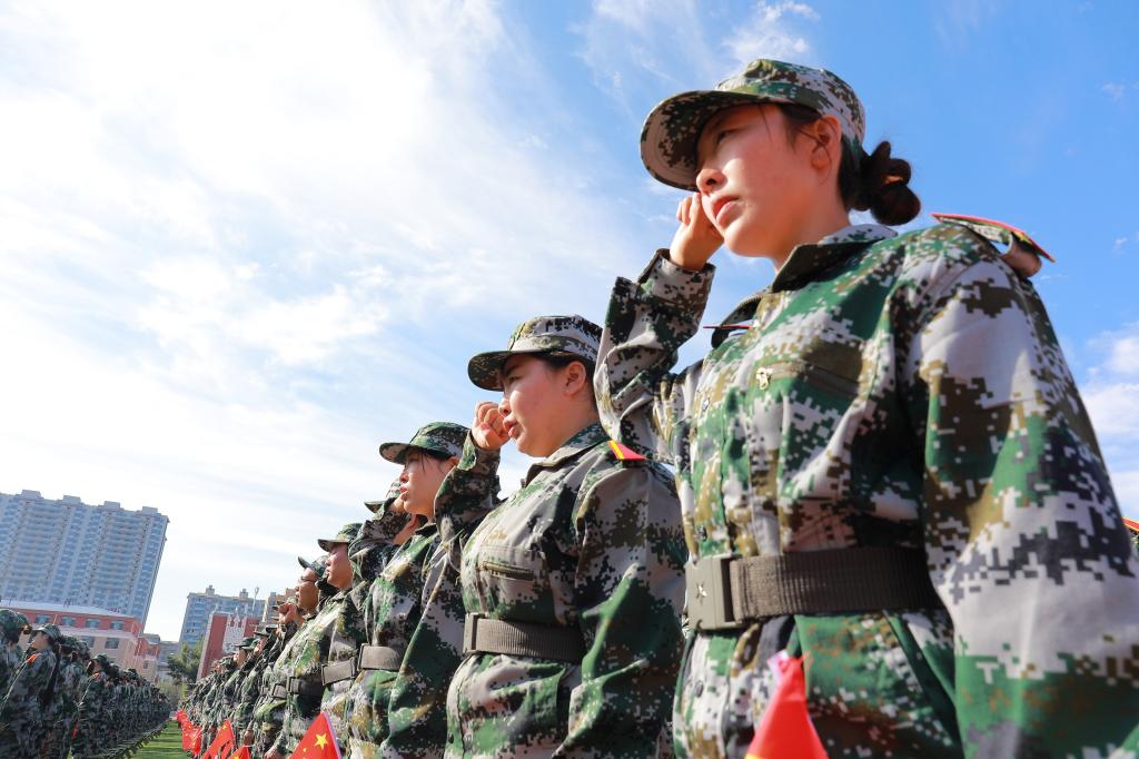 之后,学生工作部副部长白永泉宣布军训团各连编排情况;文学院孙天琦同学带领2021级全体新生进行军训宣誓。