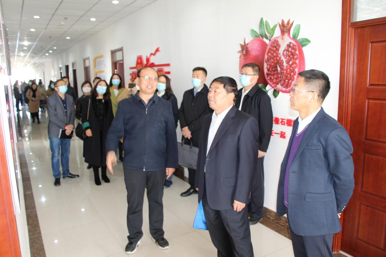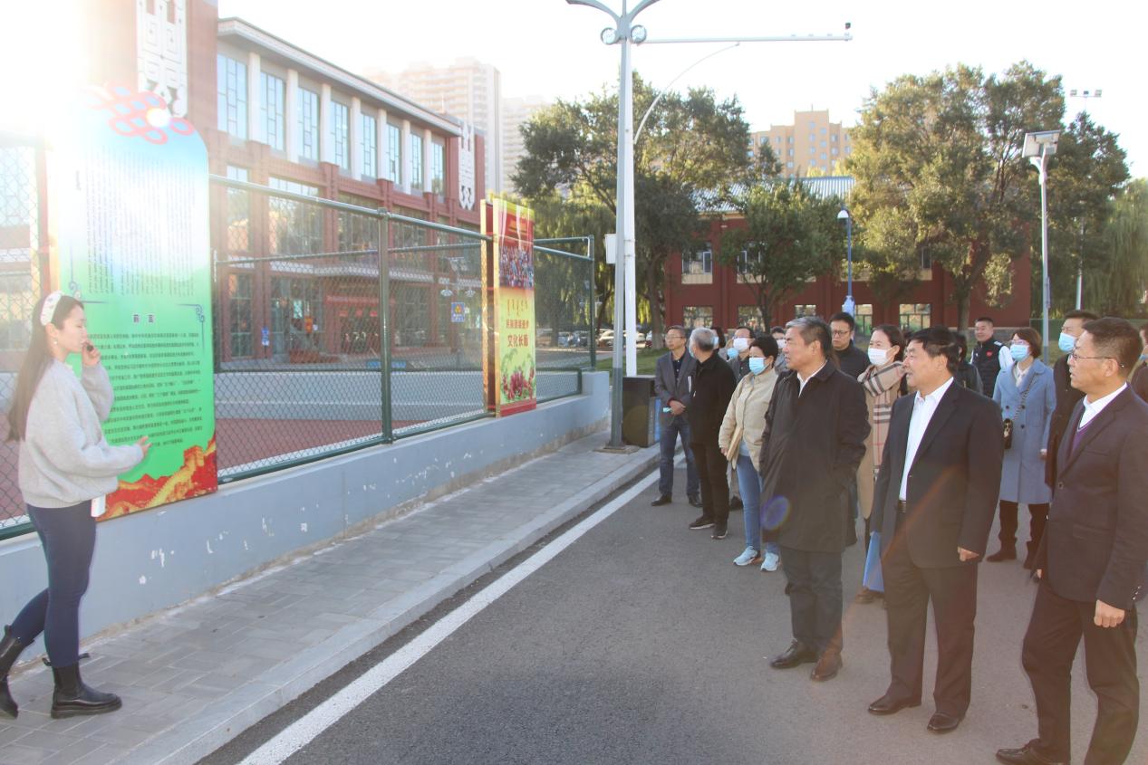 会前,学校党委副书记、校长格日乐图陪同调研团参观了民族团结文化长廊。