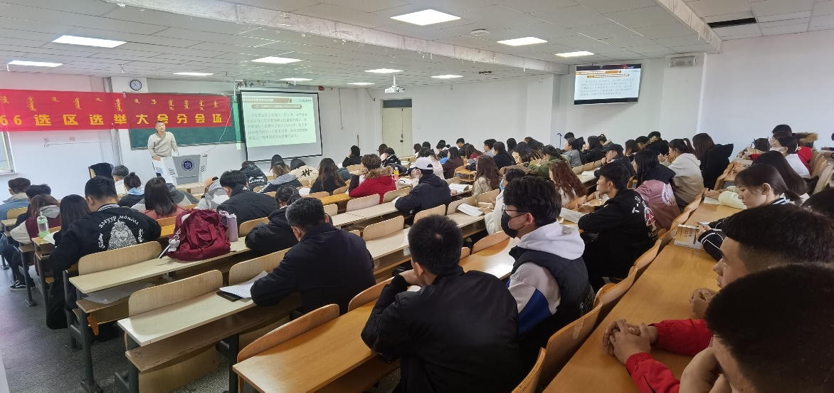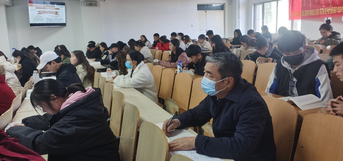 苏雅拉老师为学生讲授了《经济基础与上层建筑的矛盾运动规律》一讲,课程使用国家通用语言文字授课,授课班级为混合编班。
