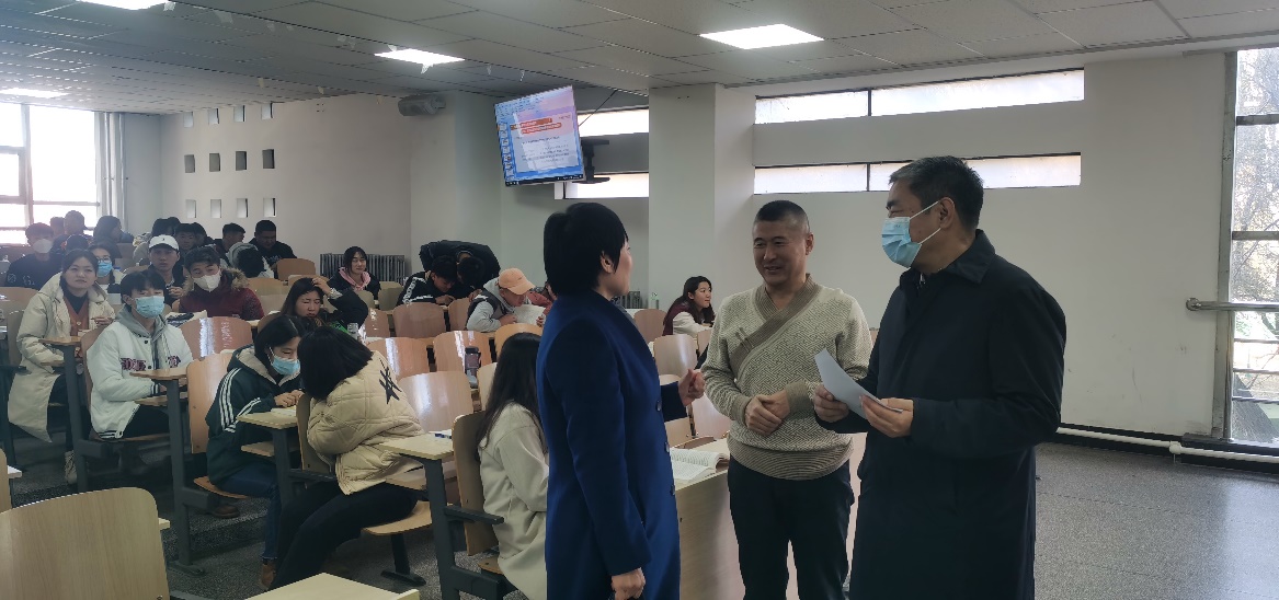 为进一步加强和推进Beat365思政课建设,深化新时代学校思想政治理论课改革创新,提高思政课教育教学质量,11月10日上午,党委副书记、校长格日乐图来到教学一线,深入思政课课堂,实地了解思政课课堂讲授情况。听取了马克思主义学院铸牢中华民族共同体意识教研室苏雅拉老师为2020级小学教育1班、2班和信息管理与信息系统班讲授的《马克思主义基本原理》课。