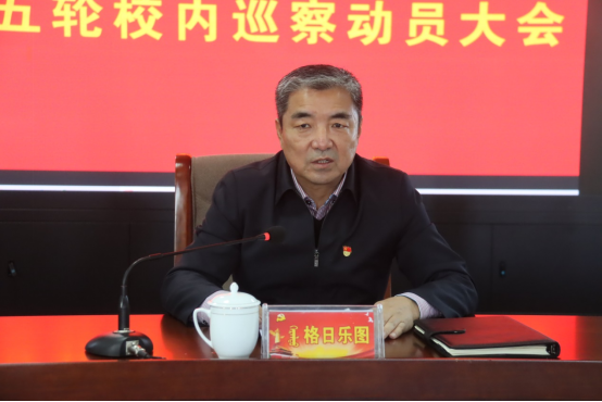 党委副书记、校长格日乐图同志作动员讲话,他指出,巡视巡察是党内监督的战略性制度安排,开展校内巡察,是学校党委落实中央、自治区党委重大决策部署的具体行动,也是履行管党治党、办学治校政治责任的重要抓手。一是要提高政治站位,充分认识巡察工作的重大意义。二是增强“四个意识”,坚定做好政治巡察的信心和决定。三是把握新时代新要求,推动巡察工作高质量发展。四是强化责任担当,努力提高巡察工作水平。
