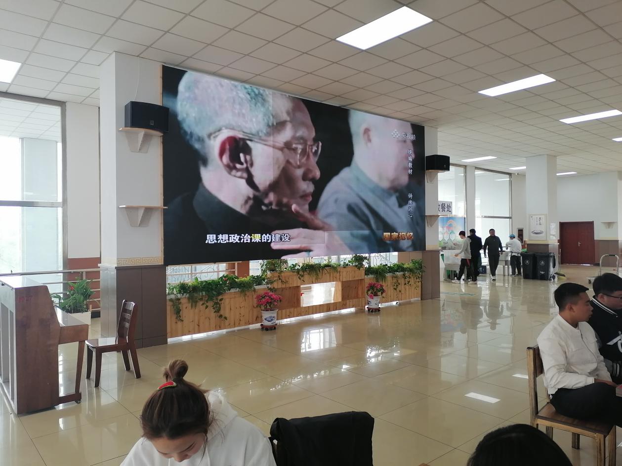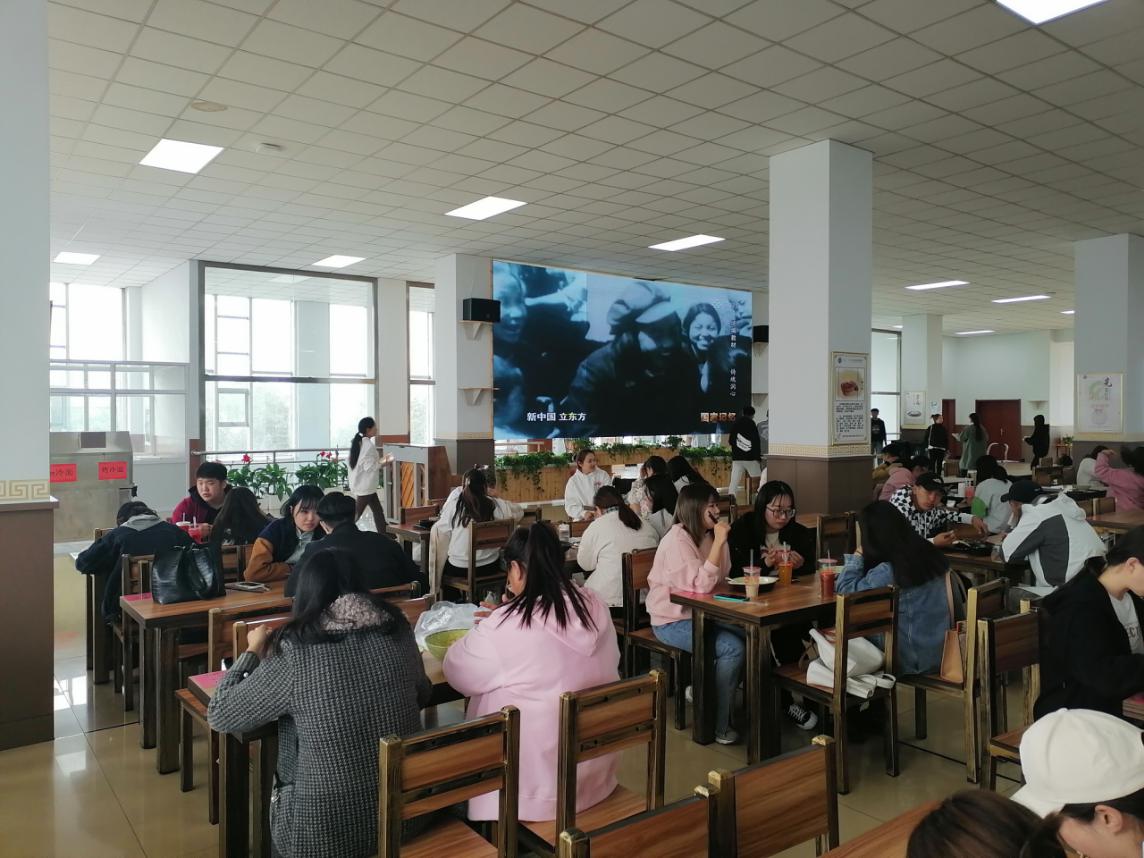 为充分发挥食堂环境育人作用和服务功能,后勤管理处党支部积极改造学校南区食堂三楼餐厅,通过增设书架花架,更换餐桌餐椅、修复粉刷墙面、安装电子屏幕,打造环境优美、温馨舒适的就餐、学习和交流活动区域。其中,通过三楼电子屏幕,结合开展党史学习教育,滚动播放红色电影以及《同心共筑中国梦》等专题纪录片,充分发挥环境育人作用。