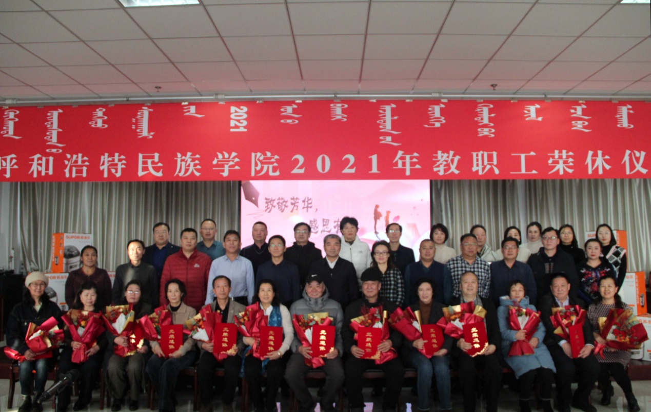 12月10日下午,学校2021年教职工荣休仪式在综合楼12楼会议室举行。校党委副书记、校长格日乐图,党委副书记胡春梅,党委委员、副校长高喜天出席荣休仪式。党政办公室、工会、离退休人员工作处等相关部门负责人,荣休教职工所在单位负责人、分工会主席、荣休教职工等50余人参加荣休仪式。荣休仪式由党委委员、副校长高喜天主持。
