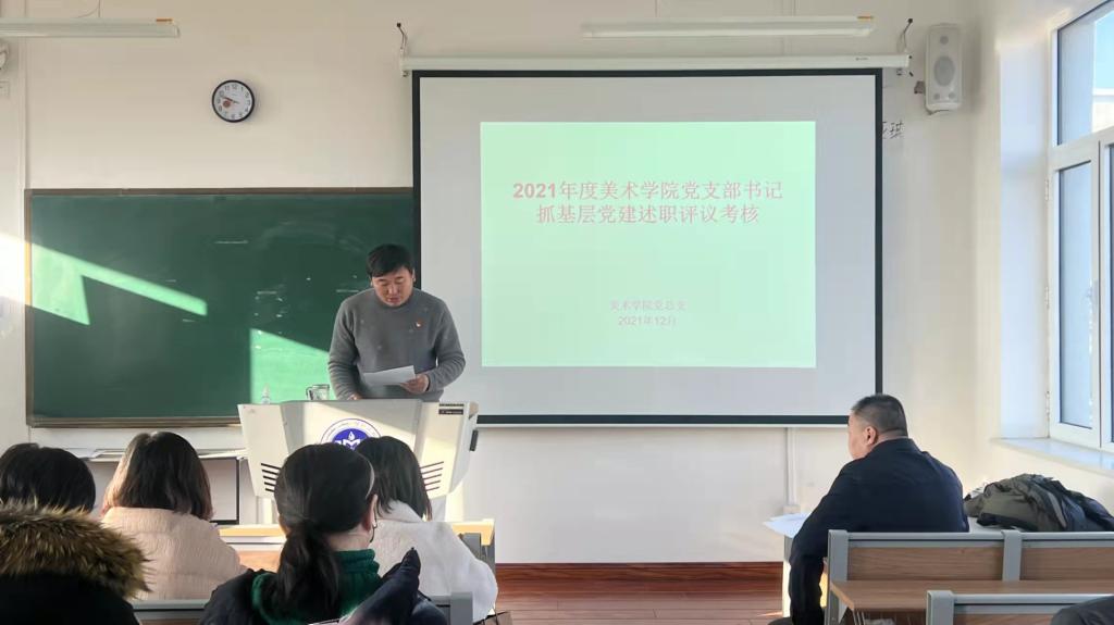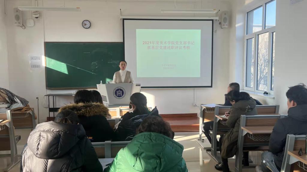12月29日上午,美术学院党总支在崇正楼四楼教室召开2021年度党支部书记抓基层党建工作述职评议会议。全体党支部书记、支部委员,师生党员代表共20人参加了会议,会议由党总支书记包旭东主持。