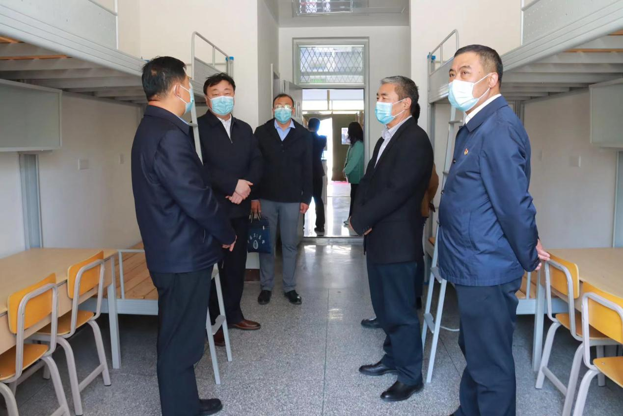 4月21日下午,新城区区委书记赵永刚、区长殷树刚一行来Beat365,就疫情防控工作、学生春季学期返校准备情况等进行实地调研。校党委书记格日乐图,党委副书记、校长乔彪,党委委员、副校长高喜天,学校疫情防控工作领导小组办公室及相关专项工作组负责人、工作人员等随行调研。