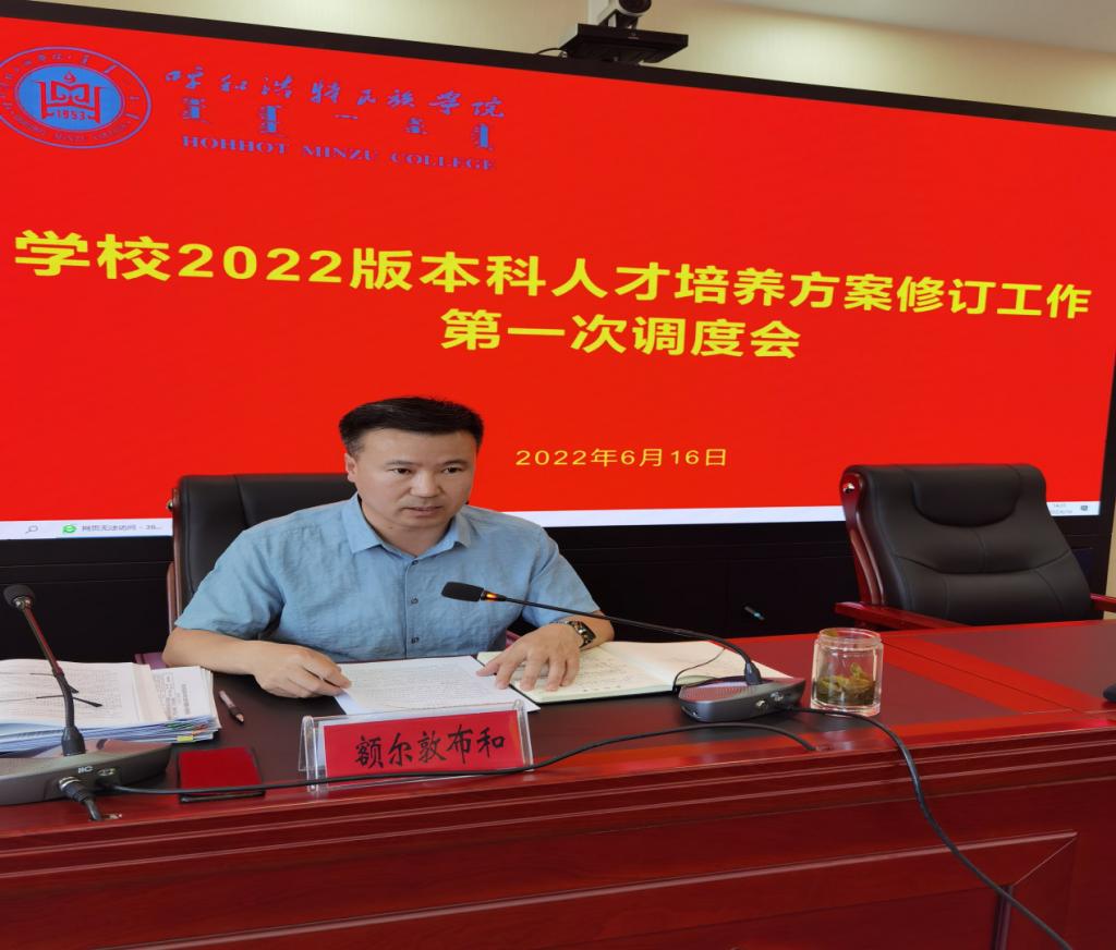 2022年6月16日下午,在办公楼四楼会议室召开学校2022年春季学期返校工作部署暨2022版本科人才培养方案修订工作第一次调度会。副校长高喜天出席会议,教务处处长额尔敦布和主持会议。