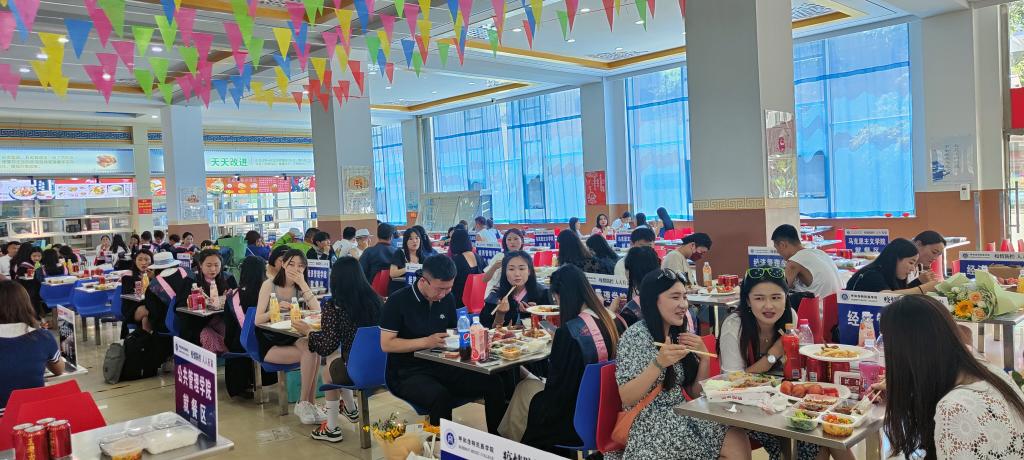 按照学校的统一调度和精心组织,各职能部门、各学院工作人员、早早来到学校西门,迎候学子返校。工作人员严格按照学校相关规定,经过扫描青城码、测温、行李消杀等流程通过校门,进入校园。在就餐时,学校在南区食堂划分学院专区,免费为2022届毕业生准备了套餐、蛋糕、水果和饮料。学校派出8辆爱心服务车,为毕业生们提供了免费搬运行李服务。同学们严格按照一米线排队,经过测温、查验青城码、洗手消毒后进入食堂就餐,感受学校的暖心服务。
