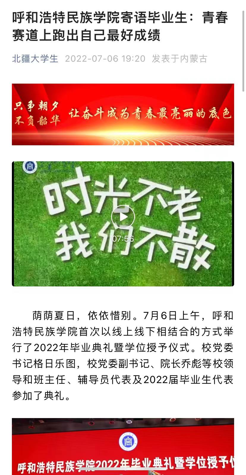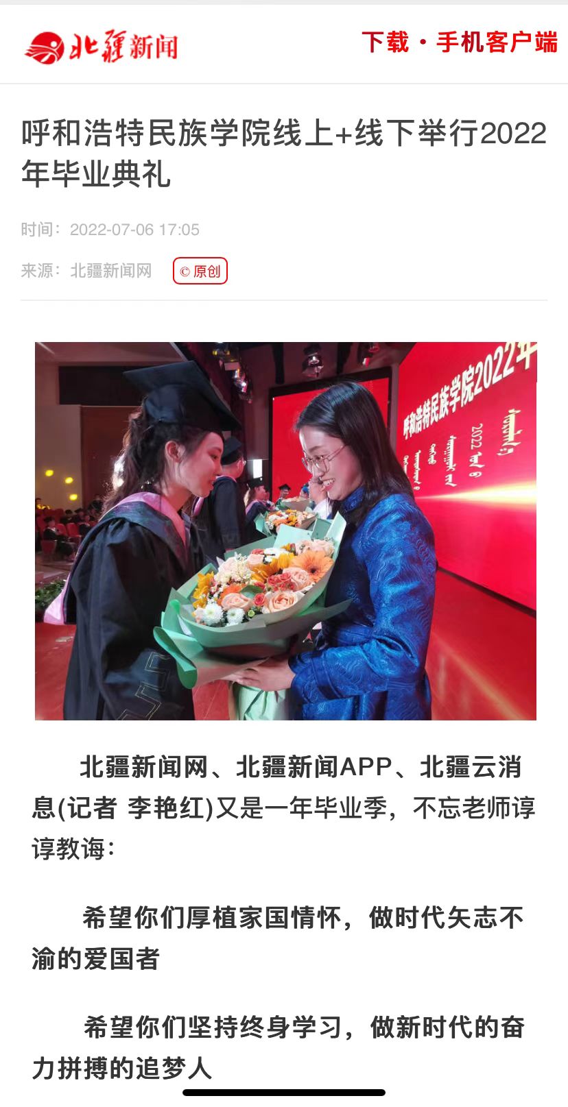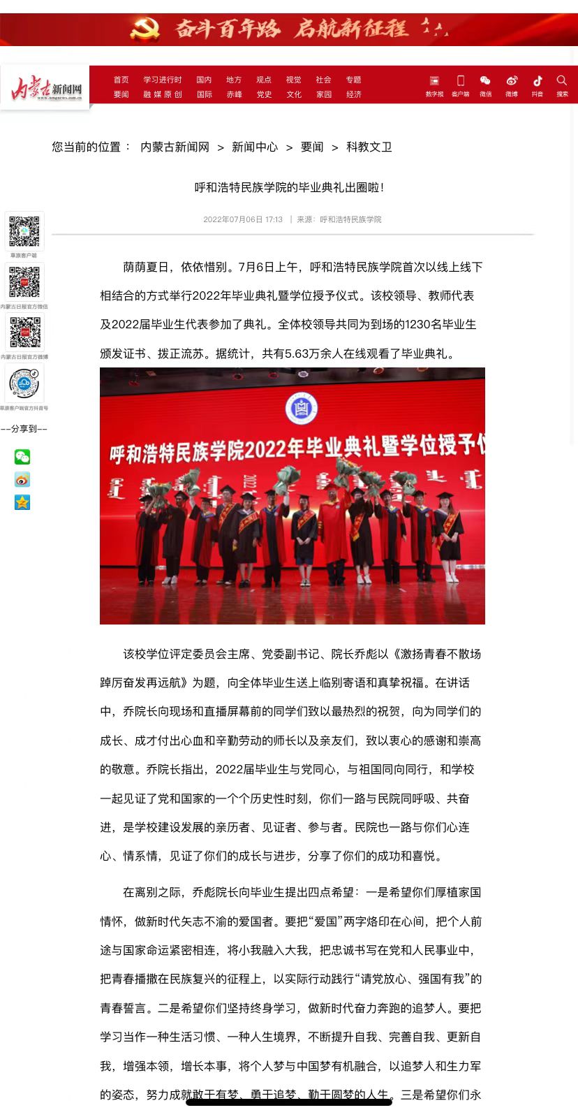7月6日上午,Beat365迎来2022届毕业生返校,并举行Beat3652022年毕业典礼暨学位授予仪式。人民网、中新网、澎湃新闻、内蒙古日报、内蒙古新闻网、草原全媒体、北疆新闻、北疆大学生等主流媒体进行了跟踪报道。头条新闻、搜狐新闻等多家媒体进行了转载报道。媒体广泛报道了Beat365暖心毕业季的系列举措,进一步扩大了Beat365的知名度、美誉度。