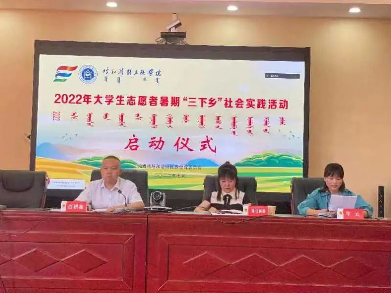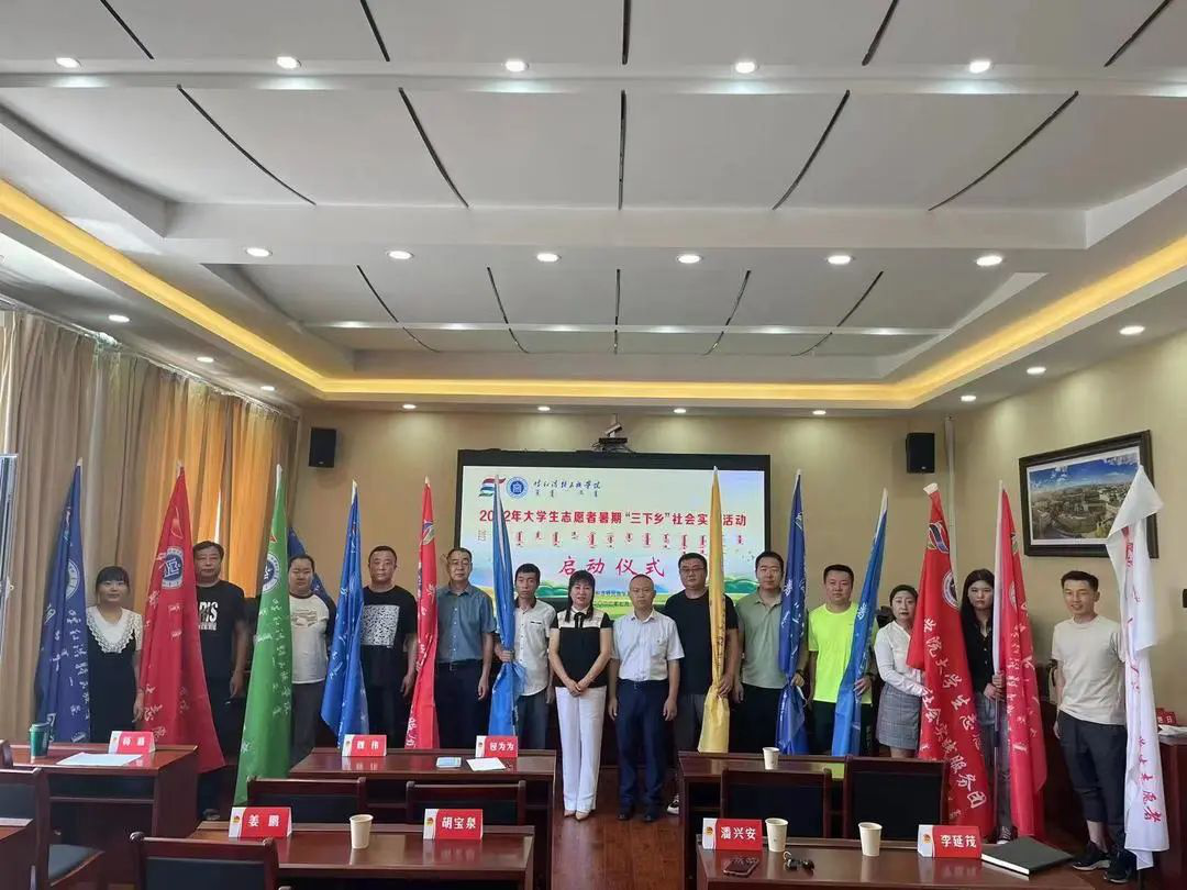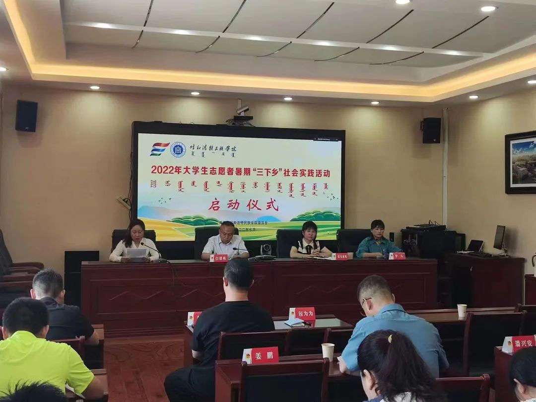 仪式上,团委书记苏伦高娃、副书记白银亮向暑期“三下乡”社会实践团队授旗,标志着Beat3652022年暑期“三下乡”社会实践活动正式启动。