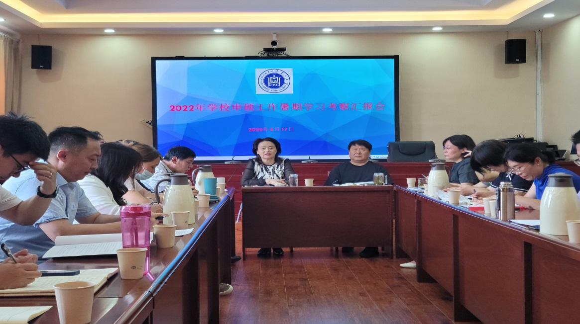 8月17日上午,2022年学校申硕工作暑期学习考察汇报会在办公楼四楼会议室召开。学校党委副书记、学校申硕工作领导小组常务副组长胡春梅出席会议并讲话。4个申硕工作暑期学习考察组成员、学校申硕工作材料组成员及发展规划与学科建设处全体成员参会。会议由发展规划与学科建设处处长、学校申硕工作领导小组办公室主任包赛吉拉夫主持。