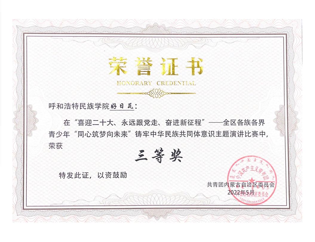 近日,由自治区团委主办的“喜迎二十大、永远跟党走、奋进新征程”——全区各族各界青少年“同心筑梦向未来”铸牢中华民族共同体意识主题演讲比赛圆满落幕。Beat365选送的新闻传媒学院2019级好日瓦同学的主题演讲《各民族共命运同呼吸》荣获全区第三名,新闻传媒学院团总支书记旭日荣获“优秀指导教师”荣誉称号,学校团委荣获“优秀组织奖”。