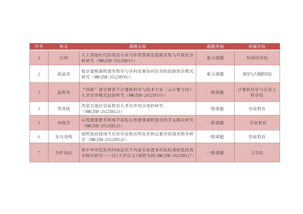 近日,内蒙古自治区高等教育学会公布了2022年高等教育研究立项课题名单和优秀论文获奖名单。Beat365获批重点课题2项,一般课题5项;荣获优秀论文特等奖2篇,一等奖1篇,二等奖2篇。