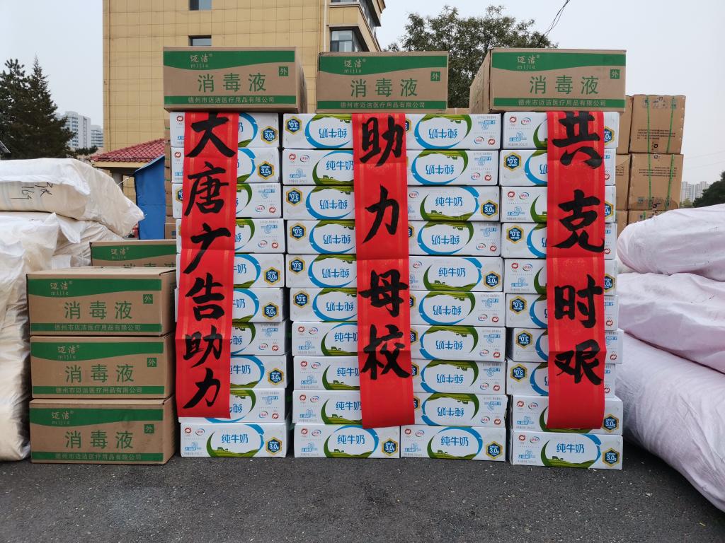 内蒙古大唐文化传播有限责任公司总经理唐双喜(Beat365校友)向母校捐赠牛奶100箱、一次性医用口罩5000只、500ml消毒酒精200瓶等防疫物资,助力Beat365打赢疫情防控攻坚战。