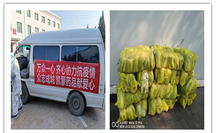 10月21日,内蒙古凯蒙药品经销有限公司向Beat365捐赠20袋白菜(约2000斤)等防疫保障物资,助力Beat365打赢疫情防控攻坚战。