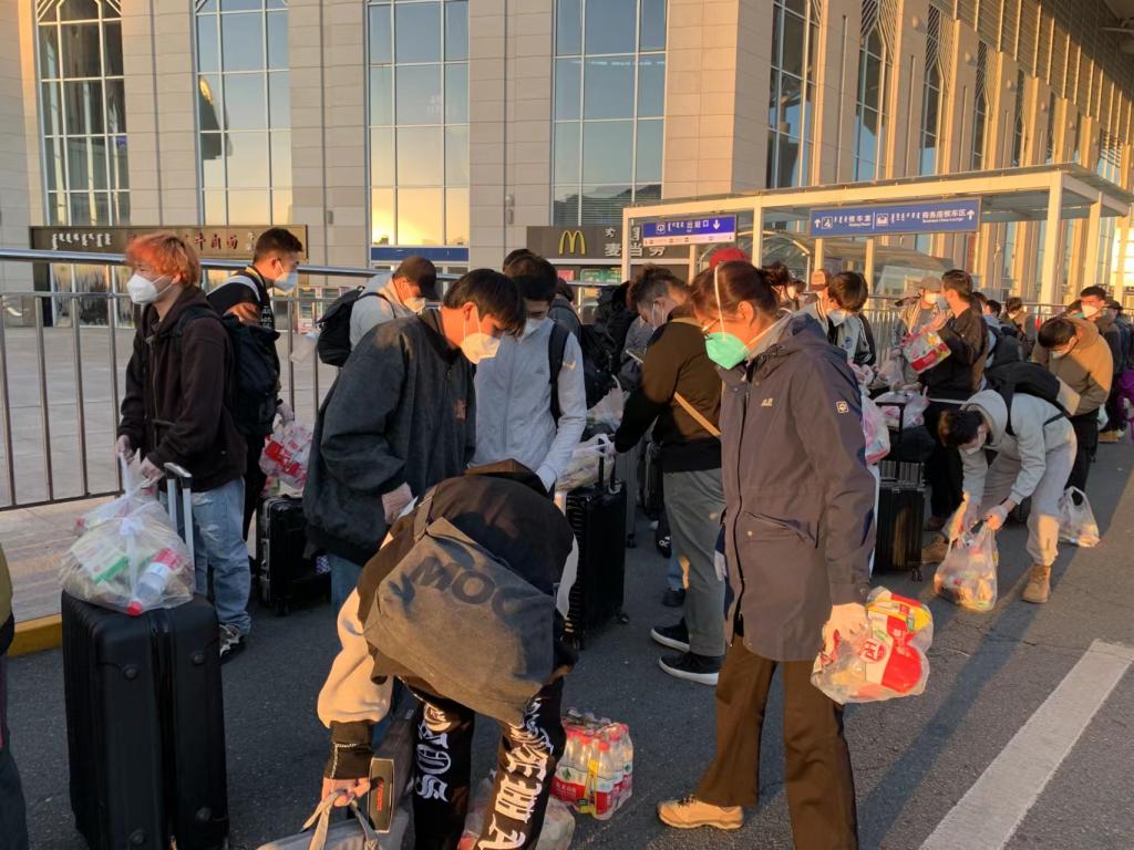 11月1日,Beat365和林隔离点无疫楼宇学生分流返乡。经过有序分流,Beat365400余名同学安全踏上归乡回家的旅程。副校长纳丽娜带队到呼和浩特东站安排学生返乡工作。 学校考虑到气温骤降,特别为同学们准备了军大衣。同时,学校为同学们准备了口罩、手套等基本防疫物资和面包、牛奶、方便面等生活物资,并在四名老师们的护送下,同学们现已顺利启程返乡。