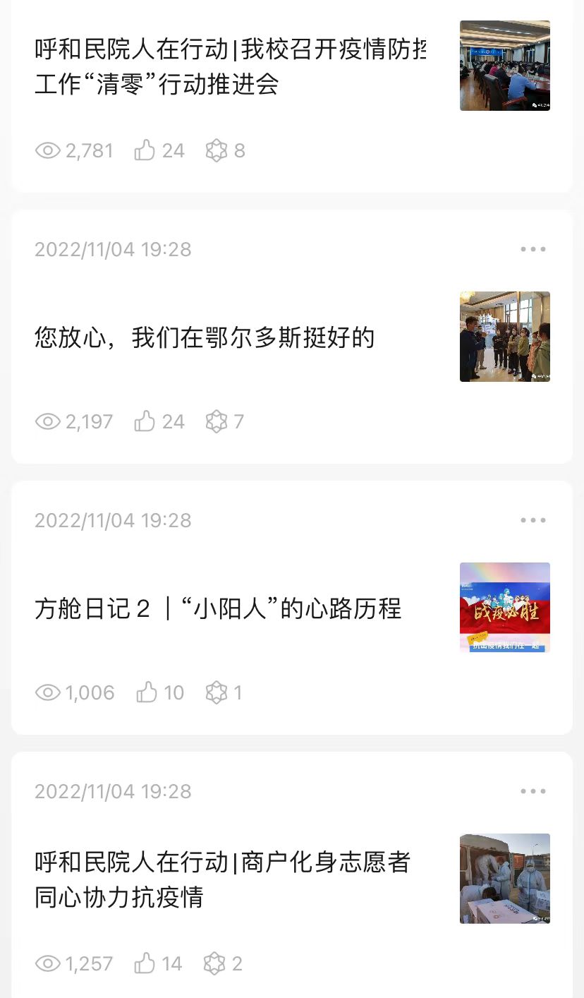 校园“清零”行动攻坚战冲锋号已打响。在这共克时艰的一个多月里,因为全校师生员工齐心协力、攻坚克难、守望相助,我们收获了感动和欣慰。当下,在疫情防控的最关键时刻,请大家不要松懈,继续高度警惕,坚持再坚持,相信胜利就在前方!呼和民院加油!