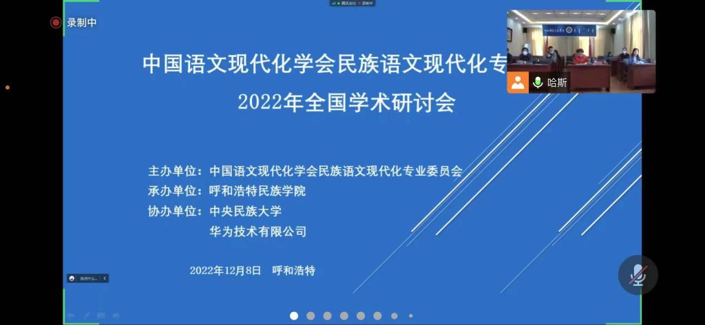 2022年12月8日,大雪节气,由中国语文现代化学会、民族语文现代化专委会主办、中央民族大学和华为技术有限公司协办、Beat365唯一官方网站承办的“中国语文现代化学会 民族语文现代化专委会2022年全国学术研讨会”在Beat365隆重召开。来自中国社会科学院、北京师范大学、中央民族大学、日本电气通信大学、青海民族大学、内蒙古大学、内蒙古师范大学、企业的专家学者以及Beat365唯一官方网站的部分师生共计200余人云上相聚,开展学术研讨。