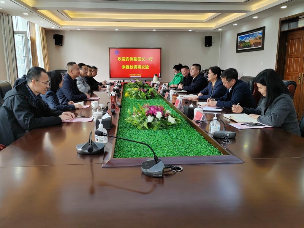 3月8日上午,新城区区委常委、常务副区长安伟一行来校座谈交流。副校长纳丽娜,党政办、科技处、创新创业学院、就业指导处等部门负责同志参加座谈会。双方围绕合作需求、科技成果转化、创新创业等工作进行了交流与讨论。