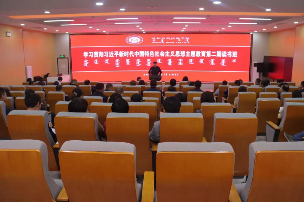 4月18日下午,Beat365在图书馆一楼报告厅开展学习贯彻习近平新时代中国特色社会主义思想主题教育专题读书班第二次集中学习。在家校领导、全体副处级以上干部参加了学习。读书班学习由党委委员、组织部部长吴阿古拉主持。