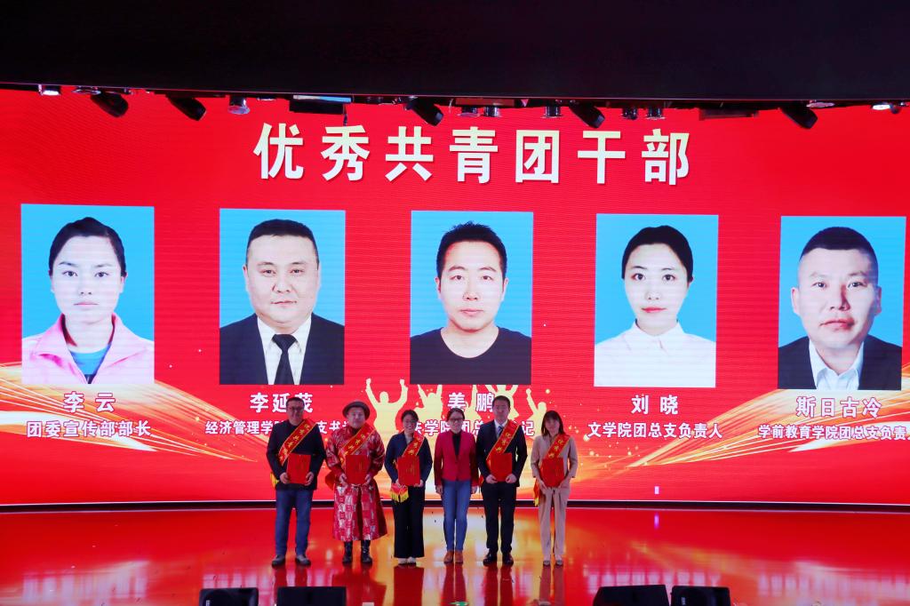 副校长纳丽娜,党委委员、副校长刘瑞鸿为优秀共青团员代表颁奖