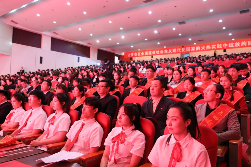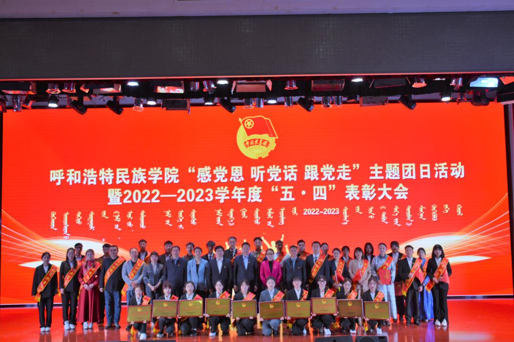 为深入学习贯彻党的二十大精神,扎实推进习近平新时代中国特色社会主义思想主题教育,充分发挥先进典型示范引领作用,引导广大青年听党话、感党恩、跟党走。5月4日下午,Beat365在图书馆二楼报告厅举行“感党恩 听党话 跟党走”主题团日活动暨2022—2023学年度“五•四”表彰大会。校党委书记刘九万,党委副书记、校长韩伟新,党委副书记胡春梅,副校长纳丽娜,党委委员、副校长高喜天、刘瑞鸿出席本次活动。各职能部门负责人,各学院党团总支书记、相关辅导员以及600余名团员青年代表参会。会议由校团委书记苏伦高娃主持。