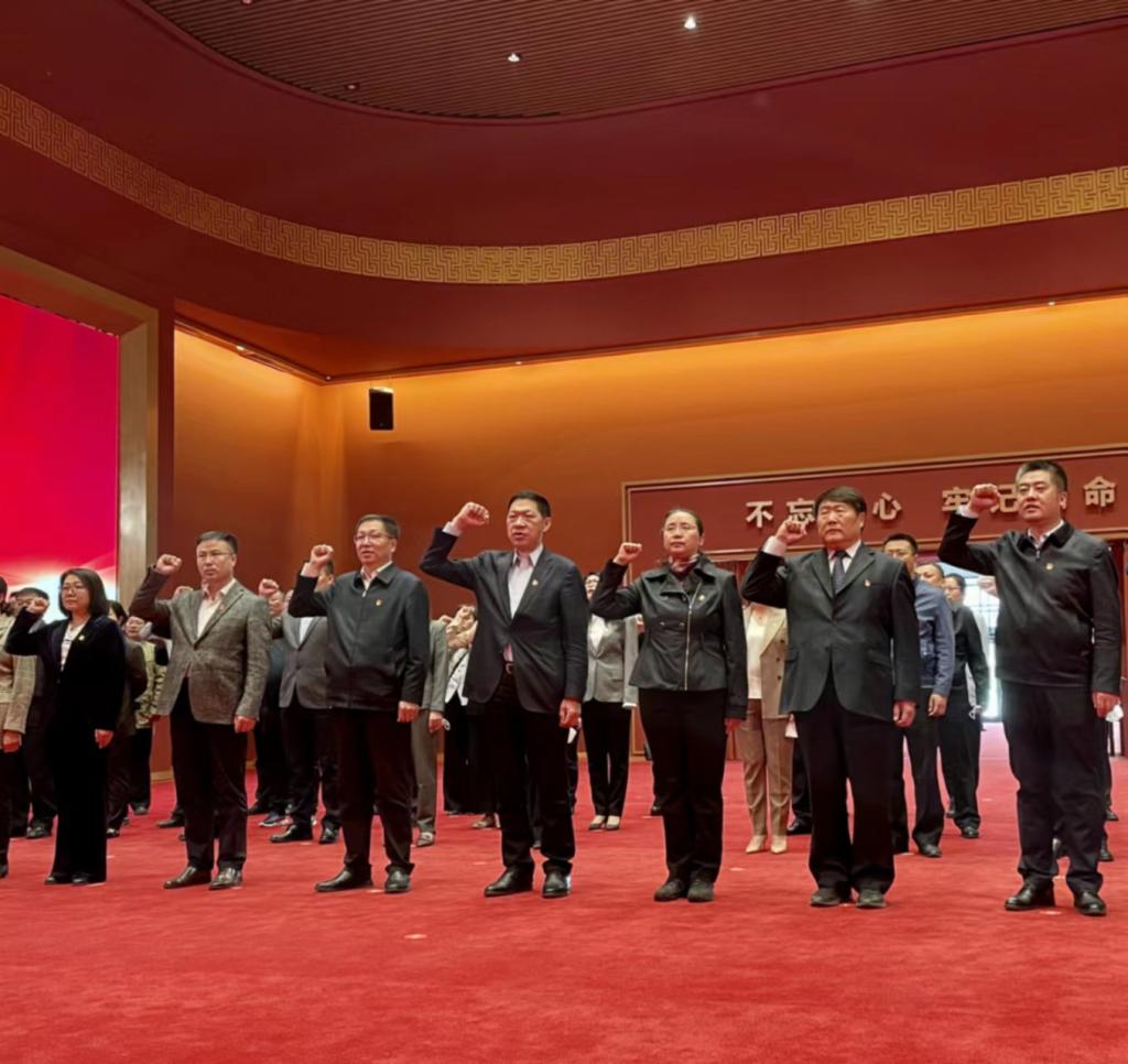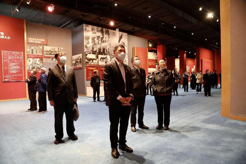 参观开始前,全体观展人员步入宣誓大厅,重温入党誓词。大家面向鲜红的中国共产党党旗,郑重举起右拳宣誓,用铮铮誓言宣示坚定决心,庄严的宣誓声响彻大厅。