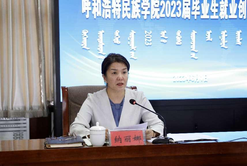 纳丽娜在主持会议时要求各二级学院各部门及时要把本次会议精神传达给本单位教职工,确保2023届毕业生就业工作任务明、举措实,成效好。