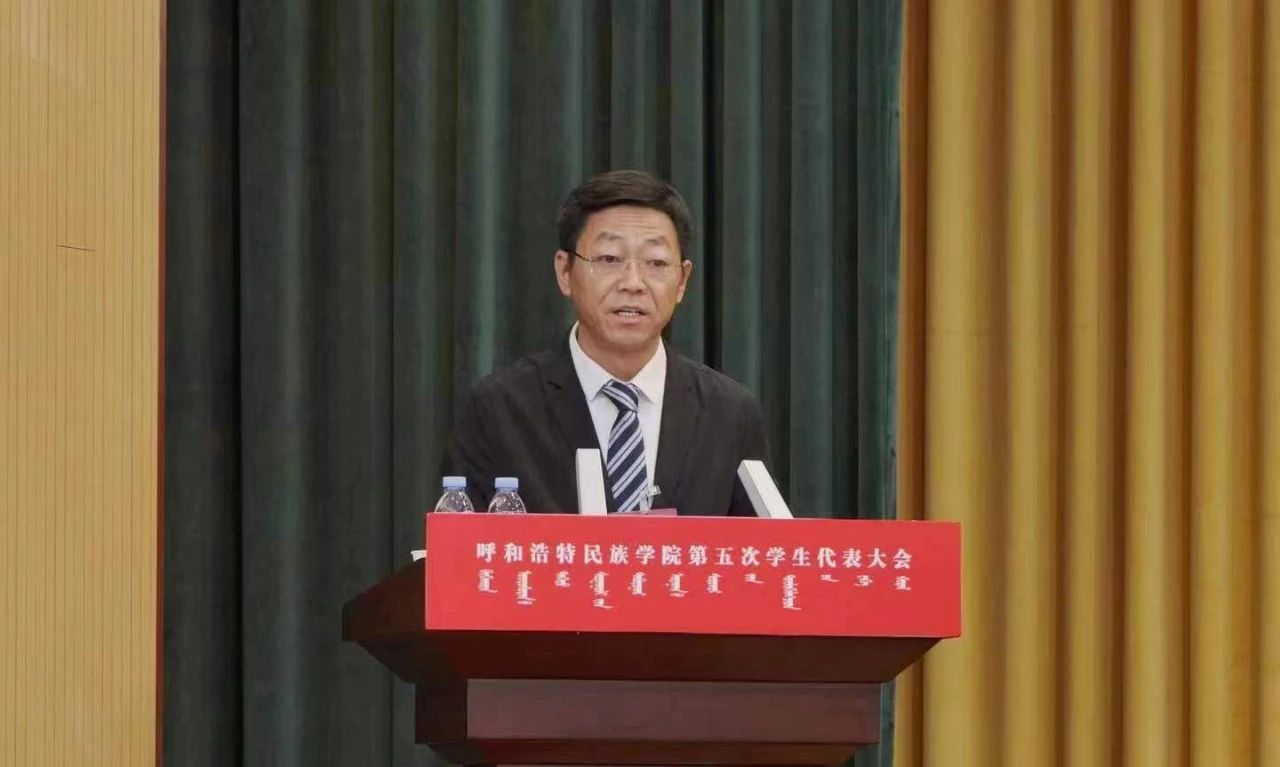 高喜天代表学校党委、行政向大会的召开表示热烈的祝贺,向全校广大青年学生致以诚挚的问候和美好的祝愿,对各级学生组织的工作给予充分肯定,同时对广大青年提出了四点希望:一是要坚定理想信念,用实际行动践行中华民族一家亲;二是要发奋成长成才,用新作为彰显青春风采;三是希望大家努力发挥作用,做学校发展的有力助手;四是希望各位代表聚焦主责主业,争做学生成长成才的“知心人”,团结带领广大同学在实现中华民族伟大复兴中国梦的历史征程中,在落实和完成好习近平总书记交给内蒙古的五大任务和全方位建设“模范自治区”工作中,在奋力开创学校各项事业快速发展新局面过程中,成长成才、奉献青春、贡献力量。