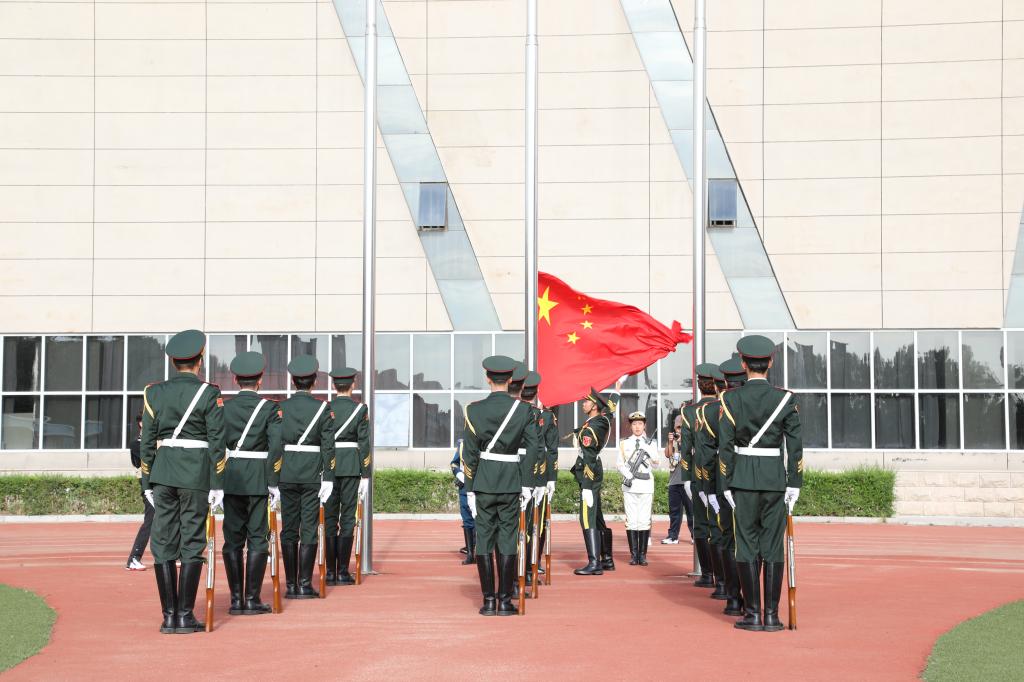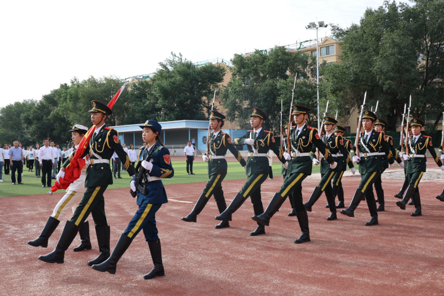 迎着清晨的第一缕霞光,飒爽英姿的国旗护卫队,迈着整齐的步伐,庄严地走向升旗台。伴随着雄壮的《义勇军进行曲》,鲜艳的五星红旗冉冉升起。全体师生党员精神饱满,整齐列队面向国旗肃然而立,行注目礼,坚定敬重的目光凝视国旗,以此表达对伟大祖国的无限忠诚与热爱。