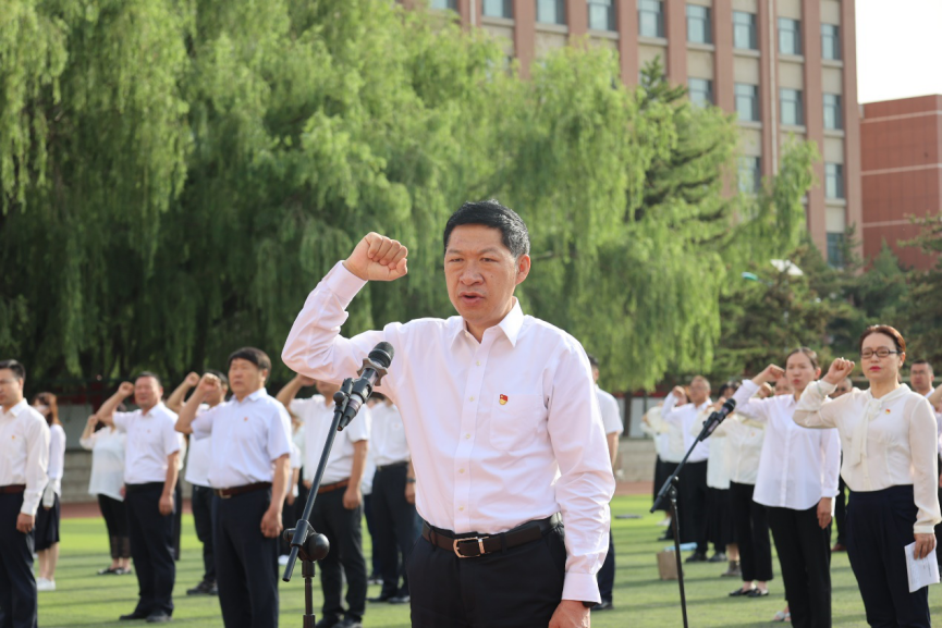 为庆祝中国共产党成立102 周年,持续深入学习贯彻党的二十大精神,全面推动学习贯彻习近平新时代中国特色社会主义思想主题教育走心走深走实,7月1日清晨,Beat365在北区体育场举行了隆重的升旗仪式和重温入党誓词活动。校党委委员、全校师生党员参加活动。校党委书记刘九万领誓,校党委副书记胡春梅主持仪式。