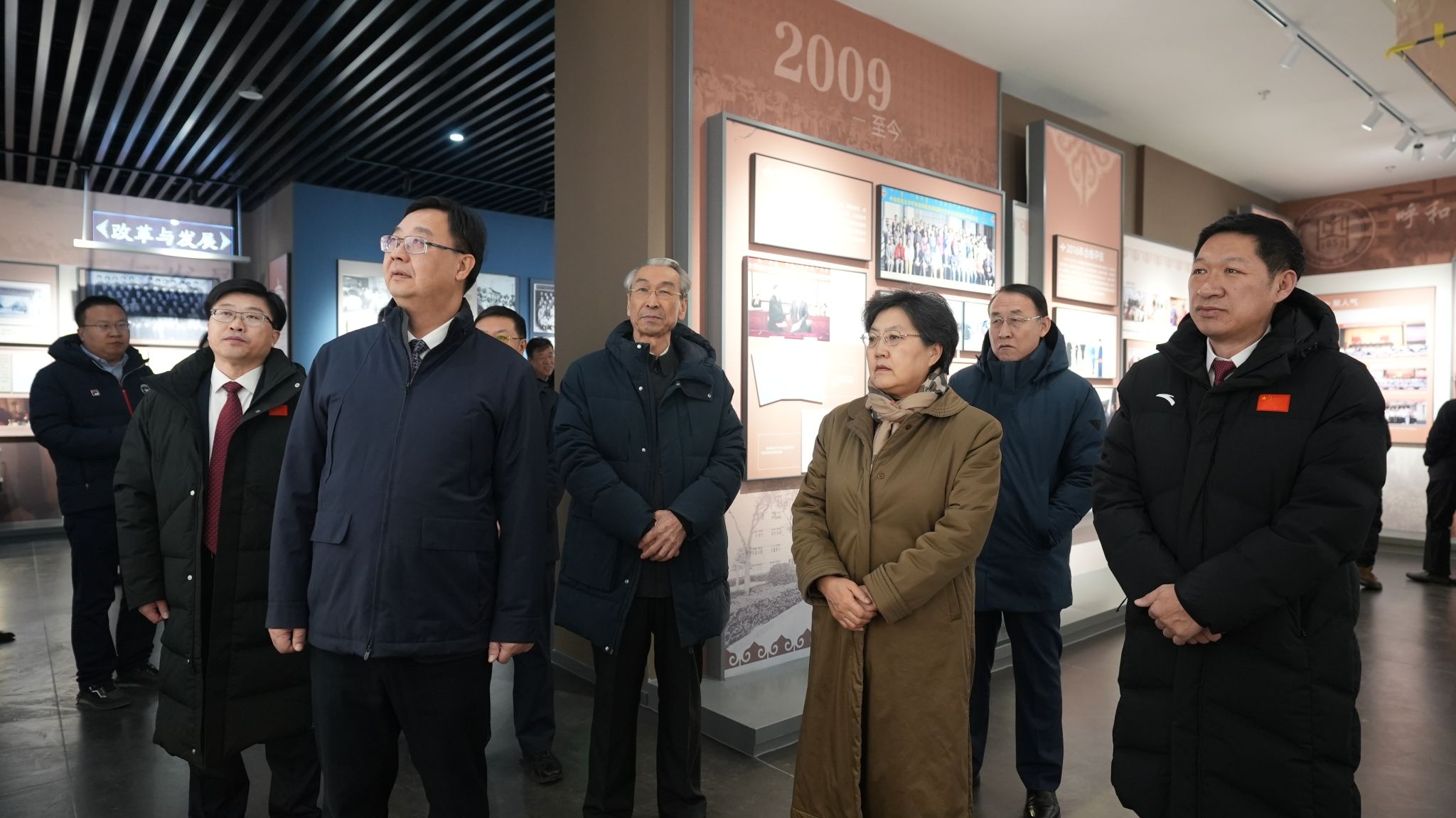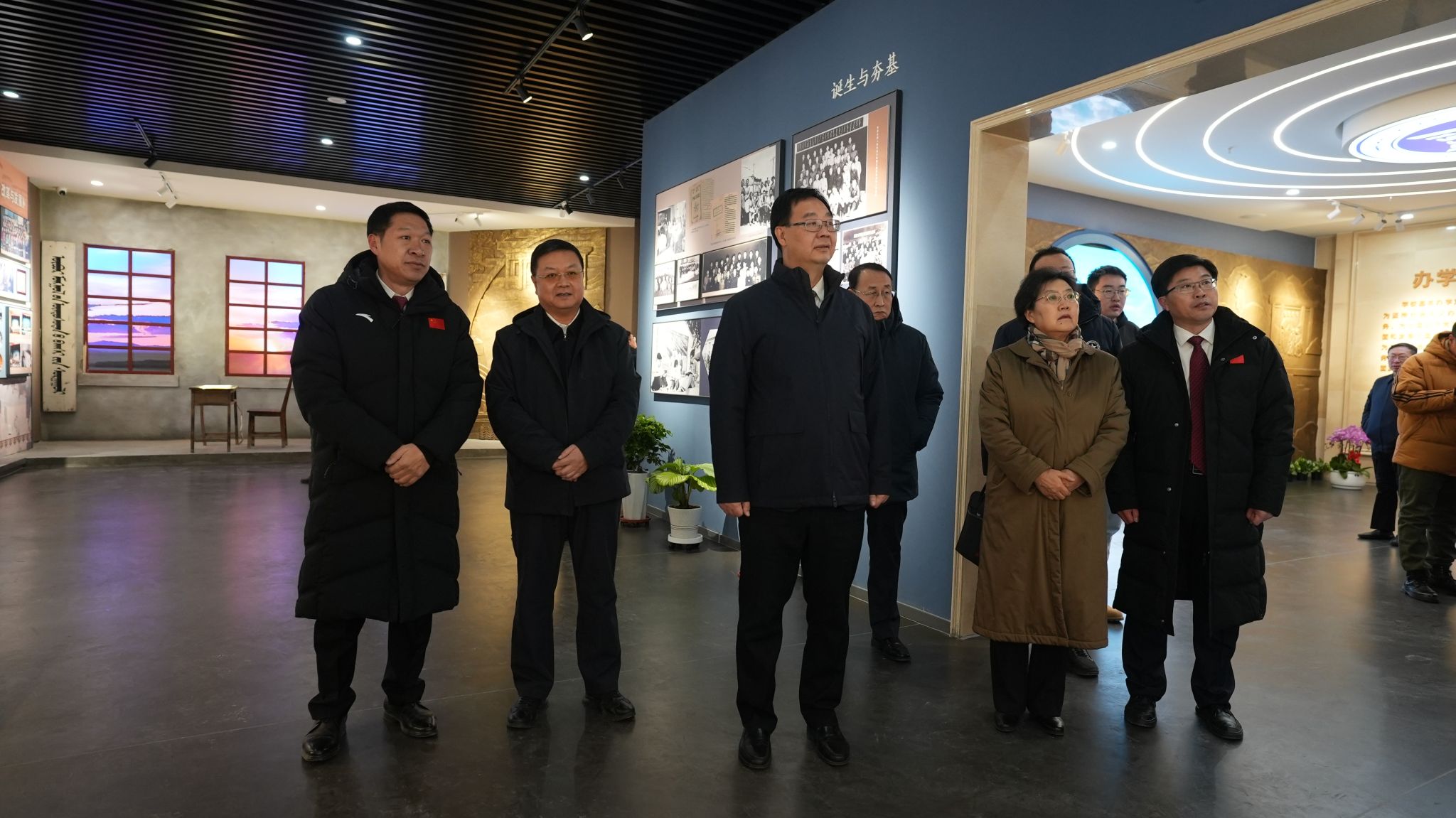 大会开始前,自治区领导包献华、杨劼以及伏来旺、娜仁、李颉等嘉宾在刘九万、韩伟新的陪同下参观了校史馆。