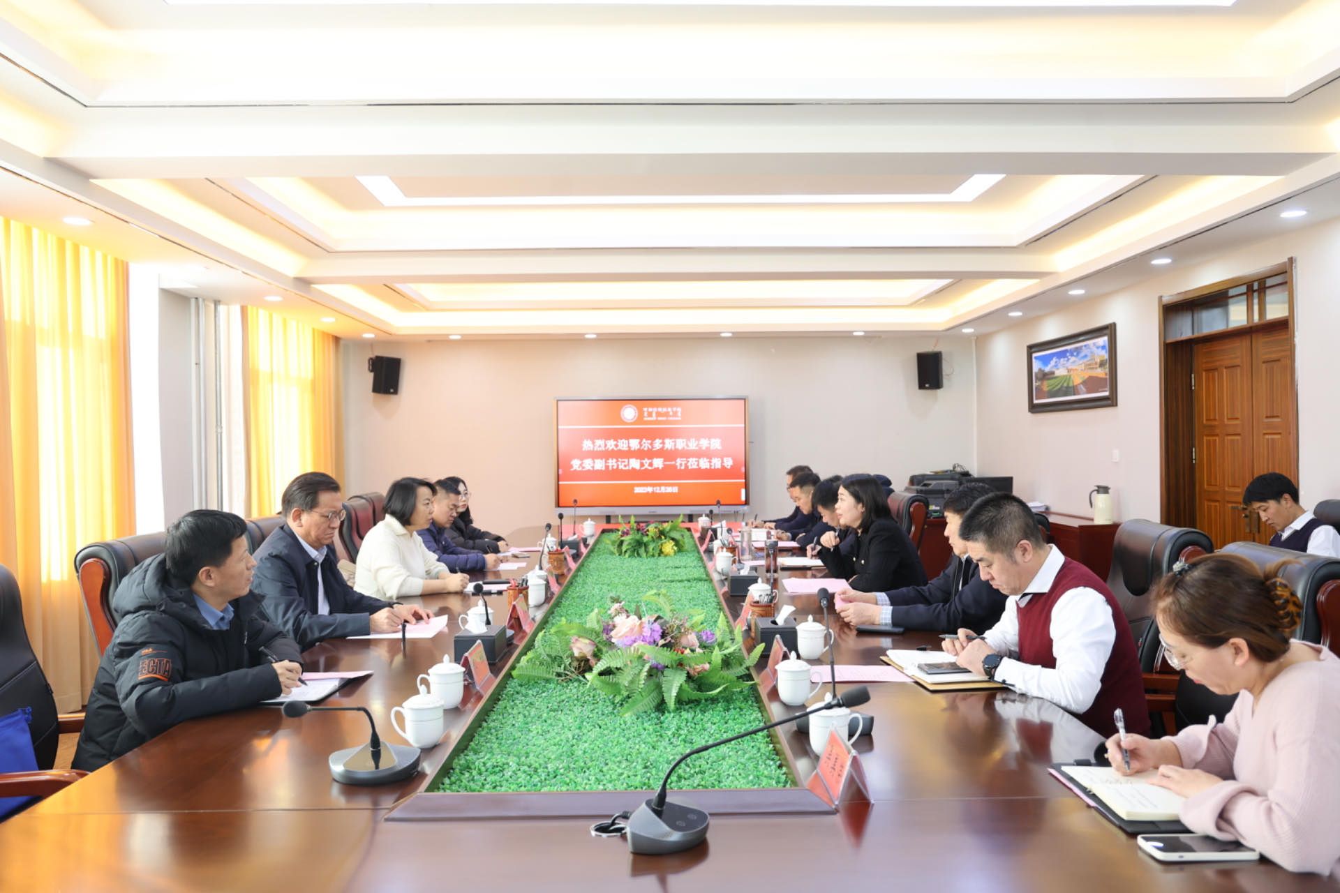 12月26日下午,鄂尔多斯职业学院党委副书记陶文辉一行到校考察调研。校党委副书记、校长韩伟新,党委副书记格根哈斯等领导出席考察调研活动。