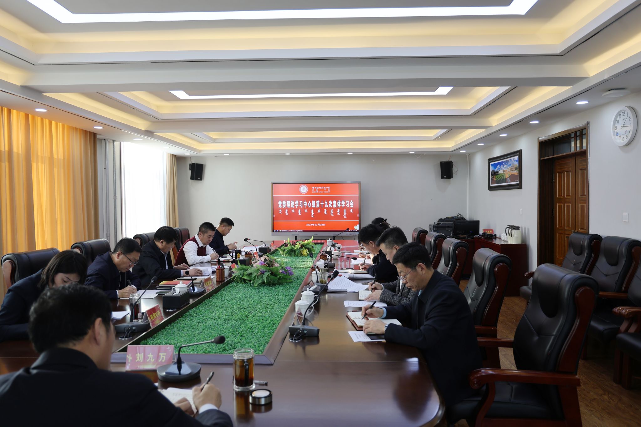 为进一步深入学习贯彻习近平总书记关于加强和改进民族工作的重要思想,深入学习领会习近平总书记在中央经济会议上的重要讲话精神、在中央政治局专题民主生活会议上的重要讲话精神,推动习近平新时代中国特色社会主义思想入心入脑,推动铸牢中华民族共同体意识建设走深走实,推动学校高质量发展,12月28日,校党委书记刘九万主持召开党委理论学习中心组第十九次集体学习会。校党委理论学习中心组成员出席会议。