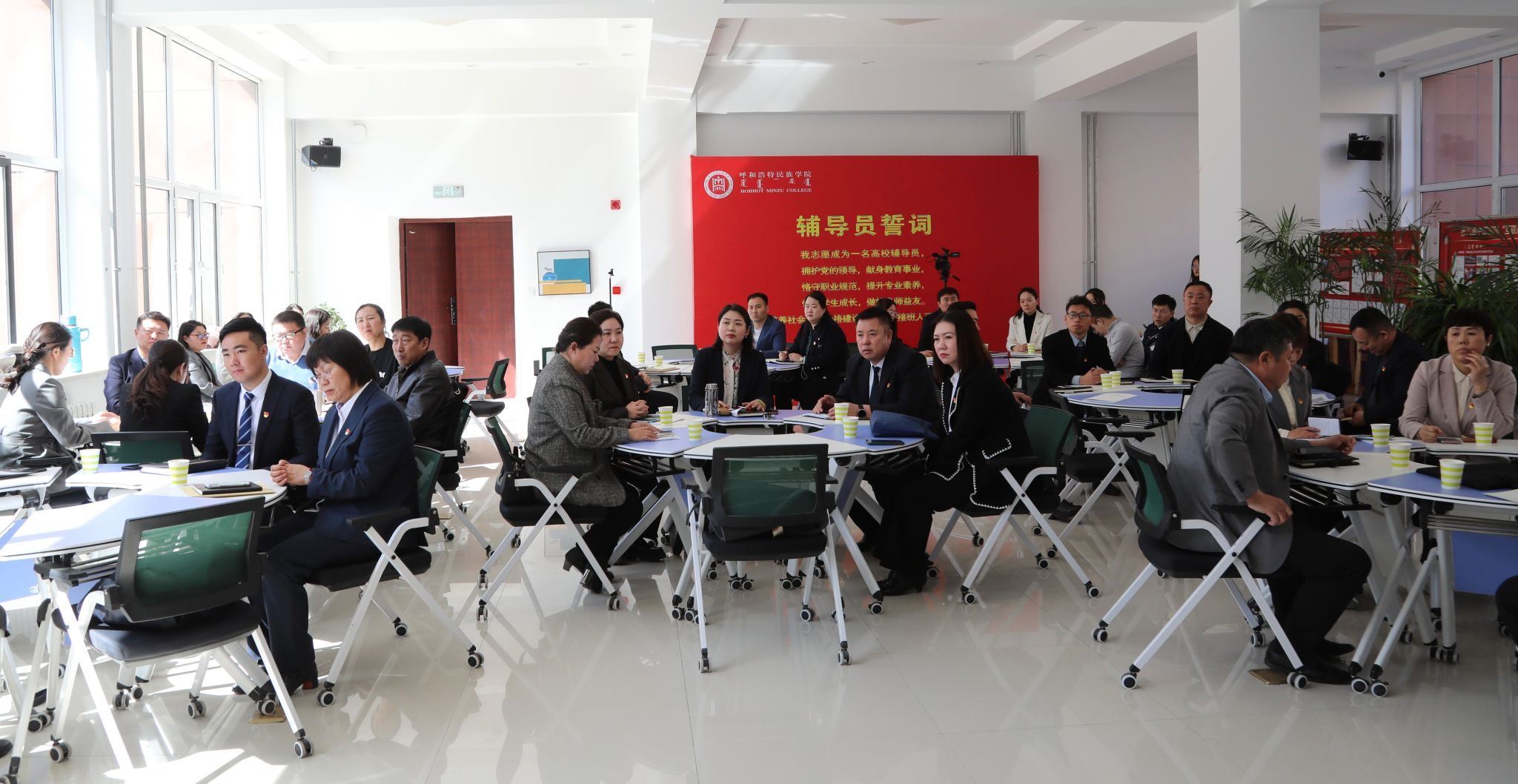 活动开始前,按照落实“第一议题”制度,重温学习了总书记关于意识形态工作的重要论述。活动中,全体辅导员在学工部负责人常喜领誓下,进行了庄重的辅导员誓词宣誓仪式。随后,学前教育学院党总支副书记萨日胡针对学生工作“一人一档”进行了工作经验分享,介绍了学院使用的班级档案。蒙古学学院辅导员青合乐代表新入职辅导员,畅谈自己入职半年来的经历和感受。