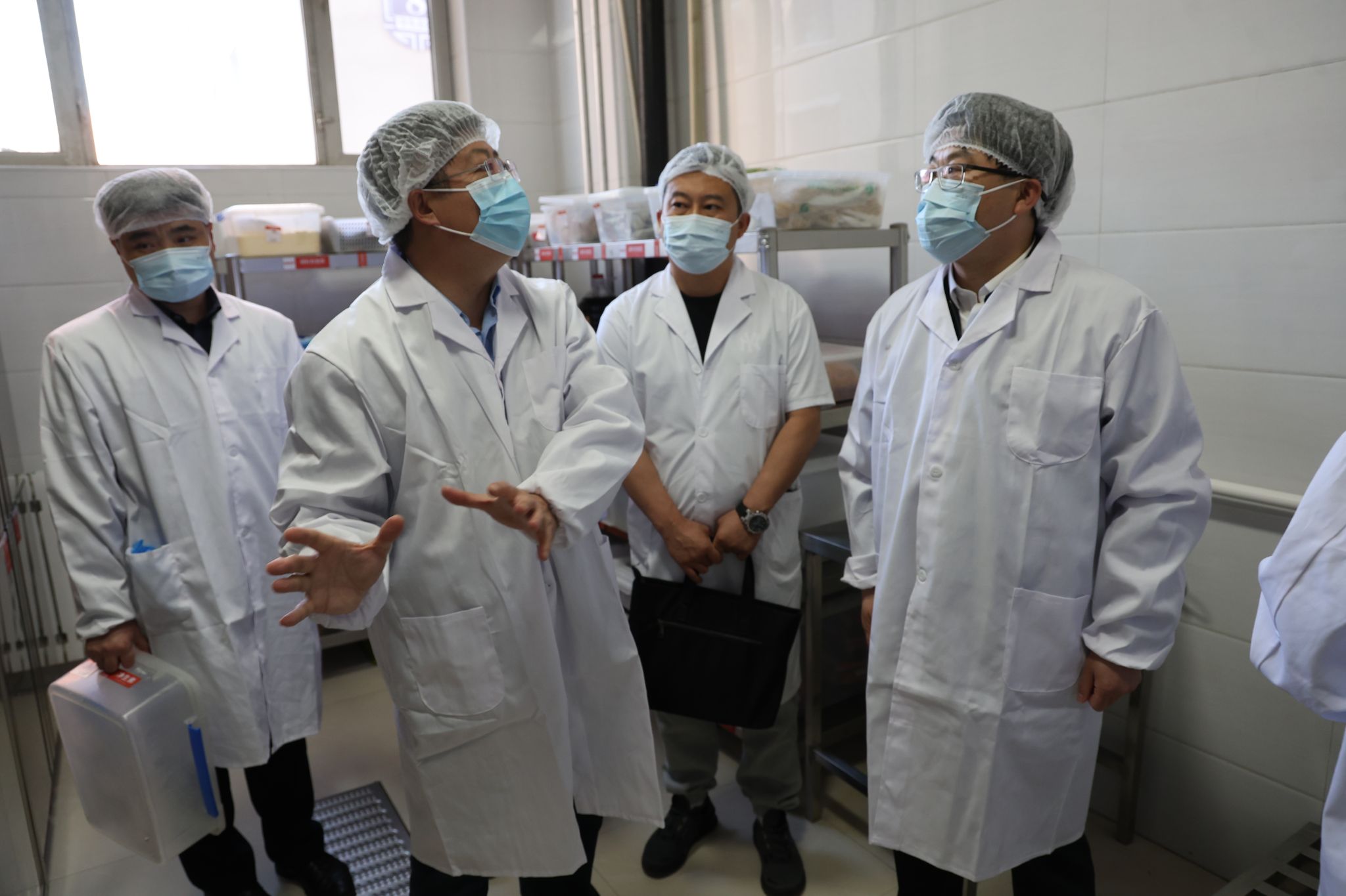 4月23日,全国校园食品安全排查整治专项行动跨省互查组专家一行来Beat365检查。学校党委副书记、校长韩伟新,学校党委委员、副校长刘瑞鸿,后勤管理处相关人员陪同检查。