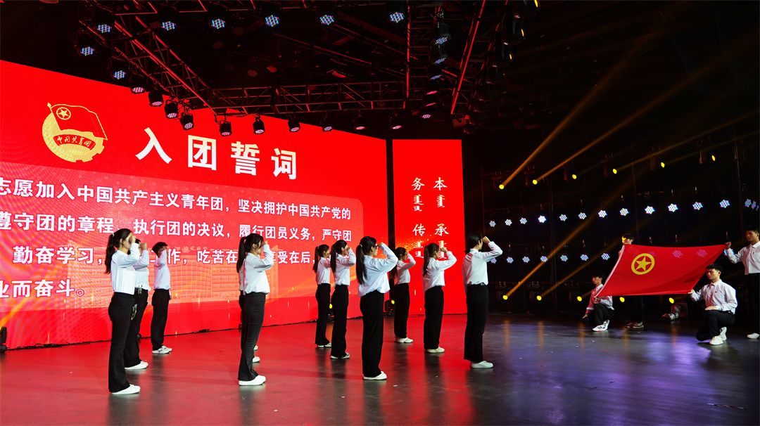 新团员入团仪式上,法学院白宇春同学带领团员们在团旗下庄严宣誓,嘹亮的声音在演播厅回荡,庄严的誓词寄托坚定的理想。团员青年们目光坚定,斗志昂扬,立志以青春敬年华,以青春献人民,赓续奋斗精神,厚植青年担当,展现青春风采。