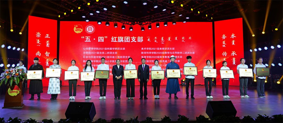 团委书记苏伦高娃宣读了2023—2024学年度“五·四”先进集体及先进个人的表彰决定。授予法学院团总支等 6个学院“五·四”红旗团总支 ,授予外国语学院2022级英语二班团支部等 14个团支部“五·四”红旗团支部,乌依勒斯等4名同志获“优秀共青团干部”荣誉称号,赵蕊等 170名同学获 “优秀共青团员”荣誉称号。