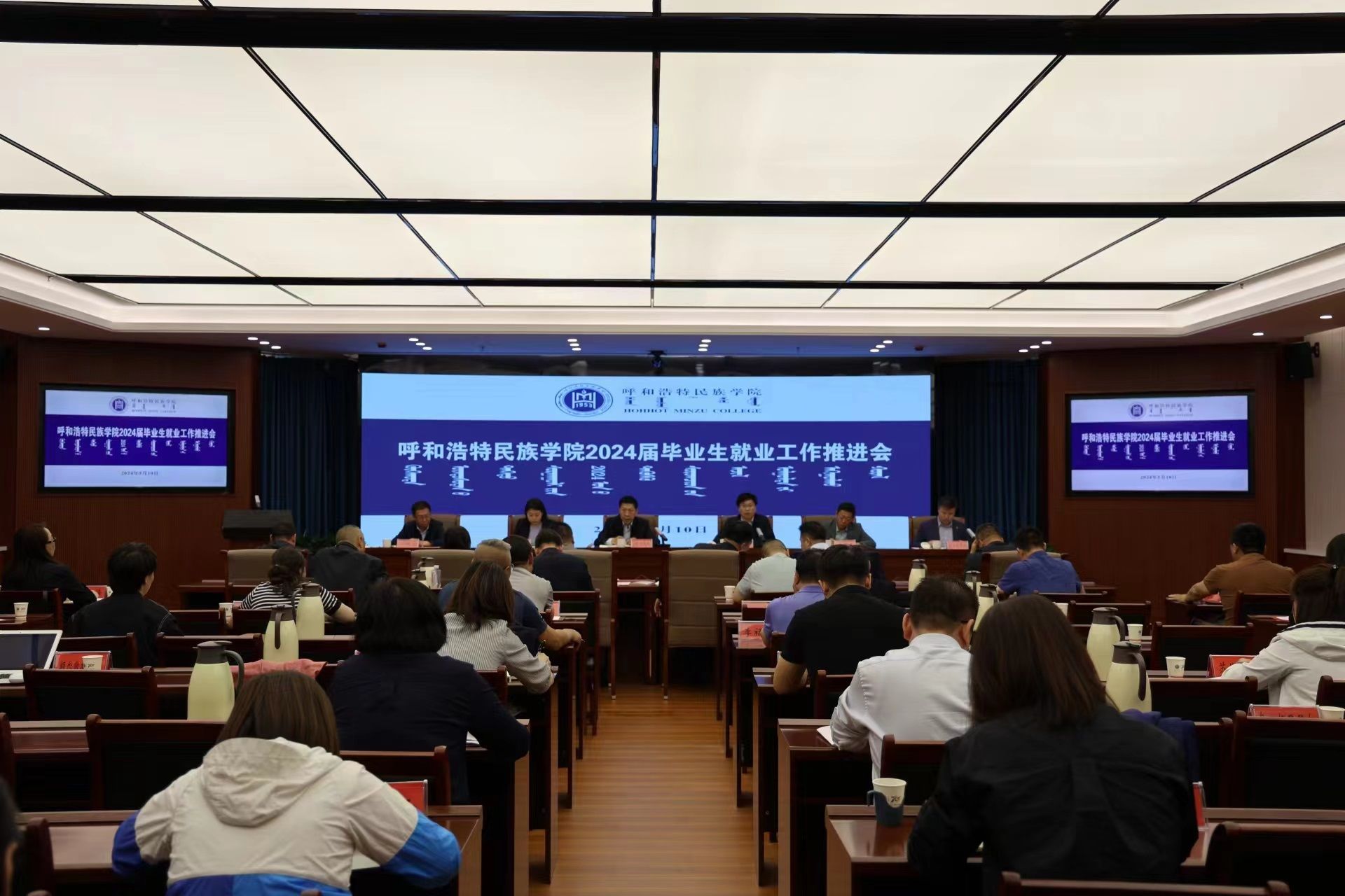 为深入贯彻落实教育部、自治区教育厅2024届高校毕业生就业工作会议有关精神和重要部署,推进学校2024届毕业生就业工作有效开展,5月10日,学校召开2024届毕业生就业工作推进会,校党委书记刘九万,党委副书记、校长韩伟新等校领导出席会议。会议由党委委员、副校长额尔敦布和主持。