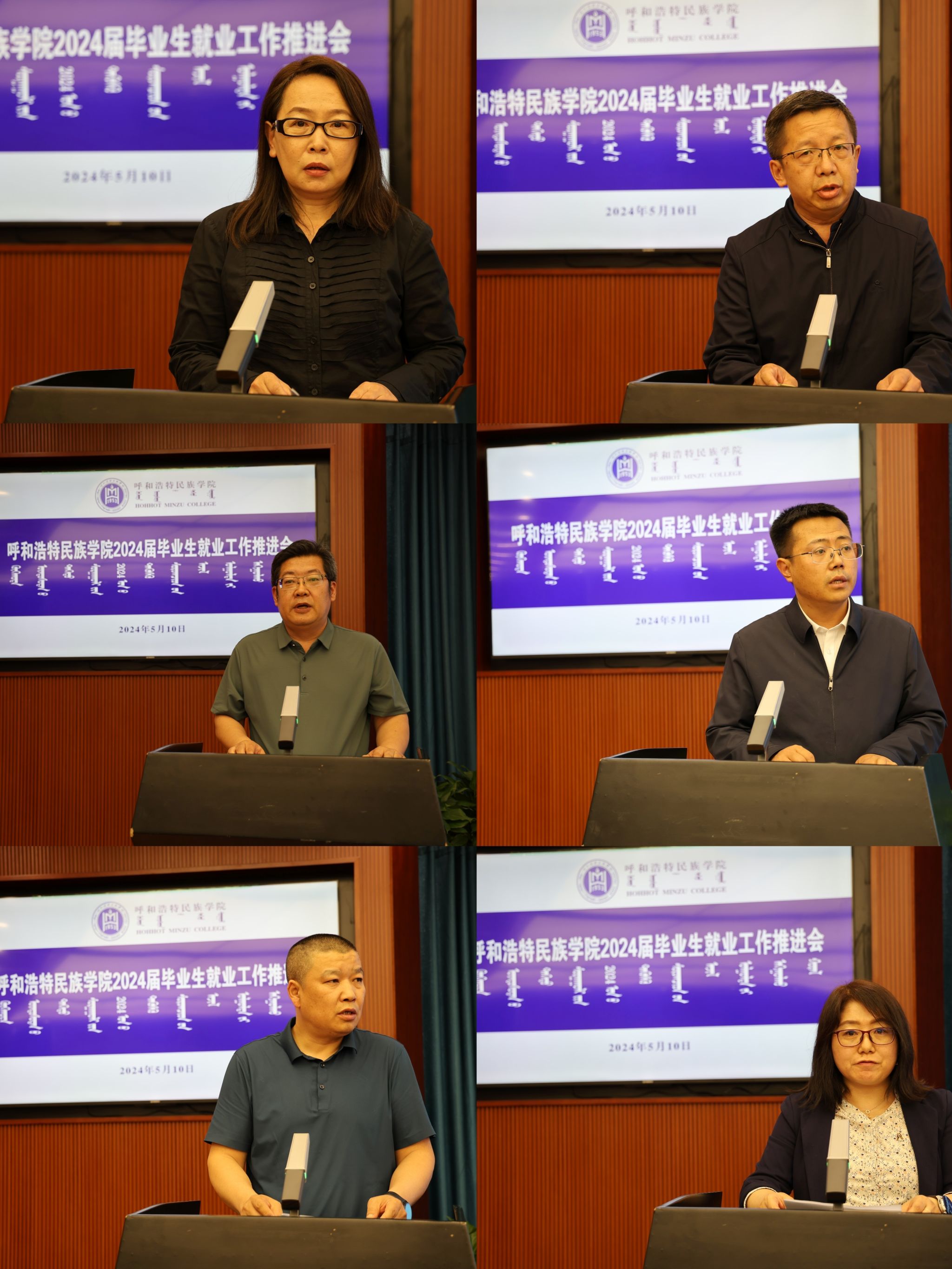 计算机科学学院、数学科学学院、外国语学院、蒙古学学院、化学与环境学院、法学院分别作了经验交流和表态发言。