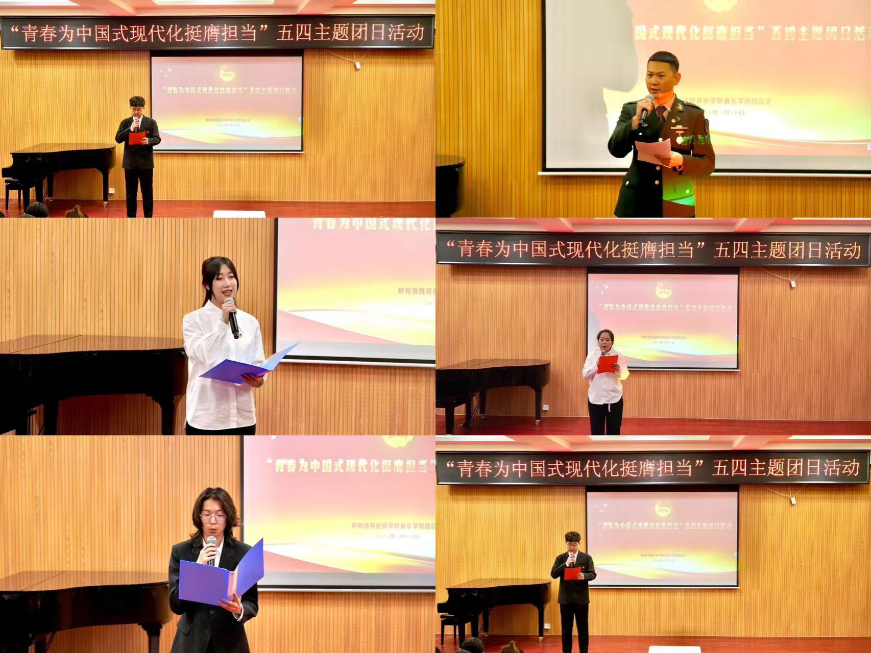 为深入学习宣传贯彻习近平总书记五四青年节对全国广大青年寄语精神,弘扬和传承五四精神,5月10日下午,音乐学院 2022 级音乐学班团支部在音乐楼多功能厅开展了“青春为中国式现代化挺膺担当”五四主题团日活动。校党委副书记格根哈斯出席并讲话。